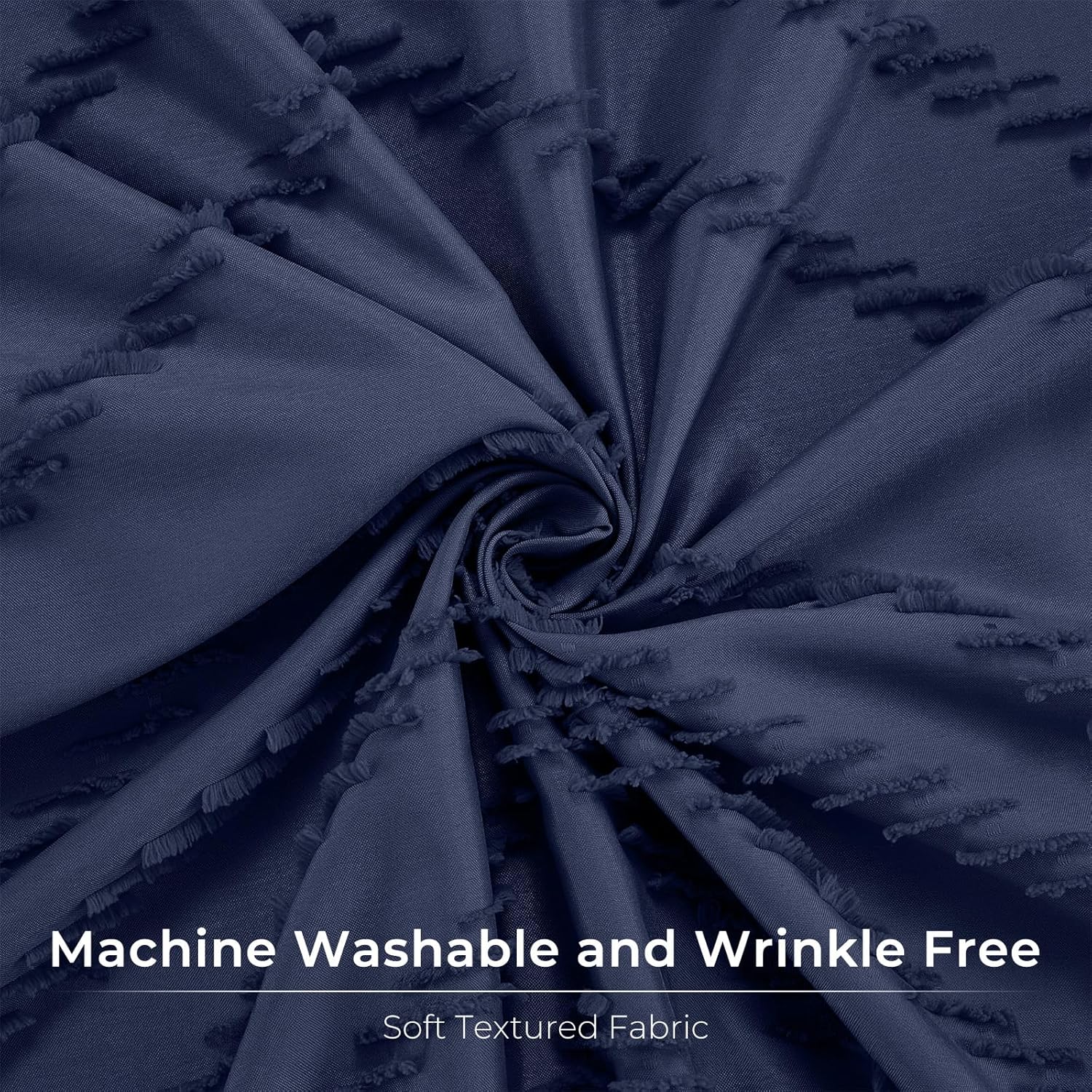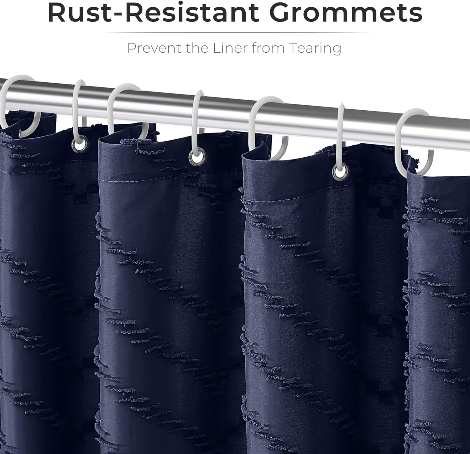 - 【Navy Textured Double Layer Waterproof Shower Curtain】- This Tufted Shower Curtain Adopted Double layers Fabric,Ultra-textured.Back waterproof TPU fabric construction make the tufted texture shower curtain last for a long time and better protect your privacy.