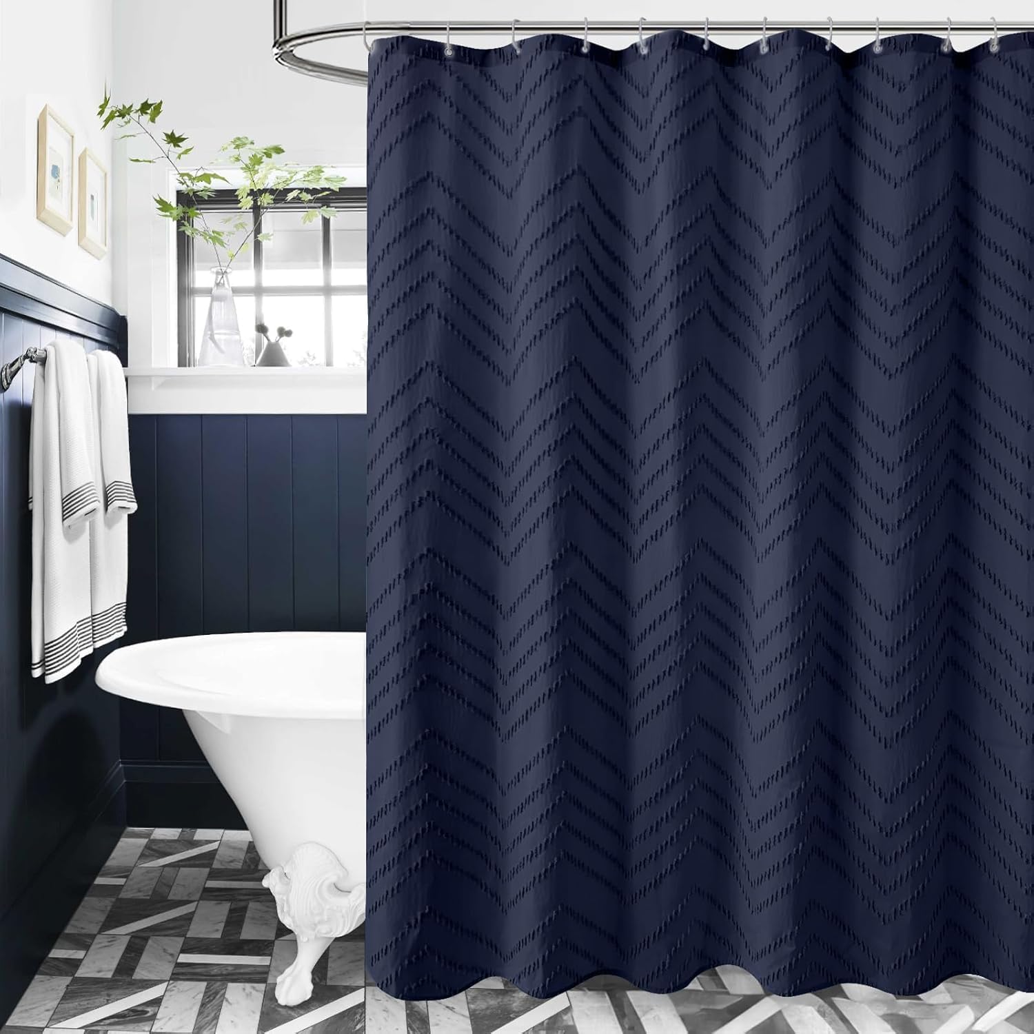 - 【Navy Shower Curtain 】- make a statement with our navy boho shower curtain, featuring a unique chevron texture pattern that will add a touch of fashion to your bathroom. the chenille woven chevron design provides a neutral background while effectively improving the overall aesthetics of your bathroom.