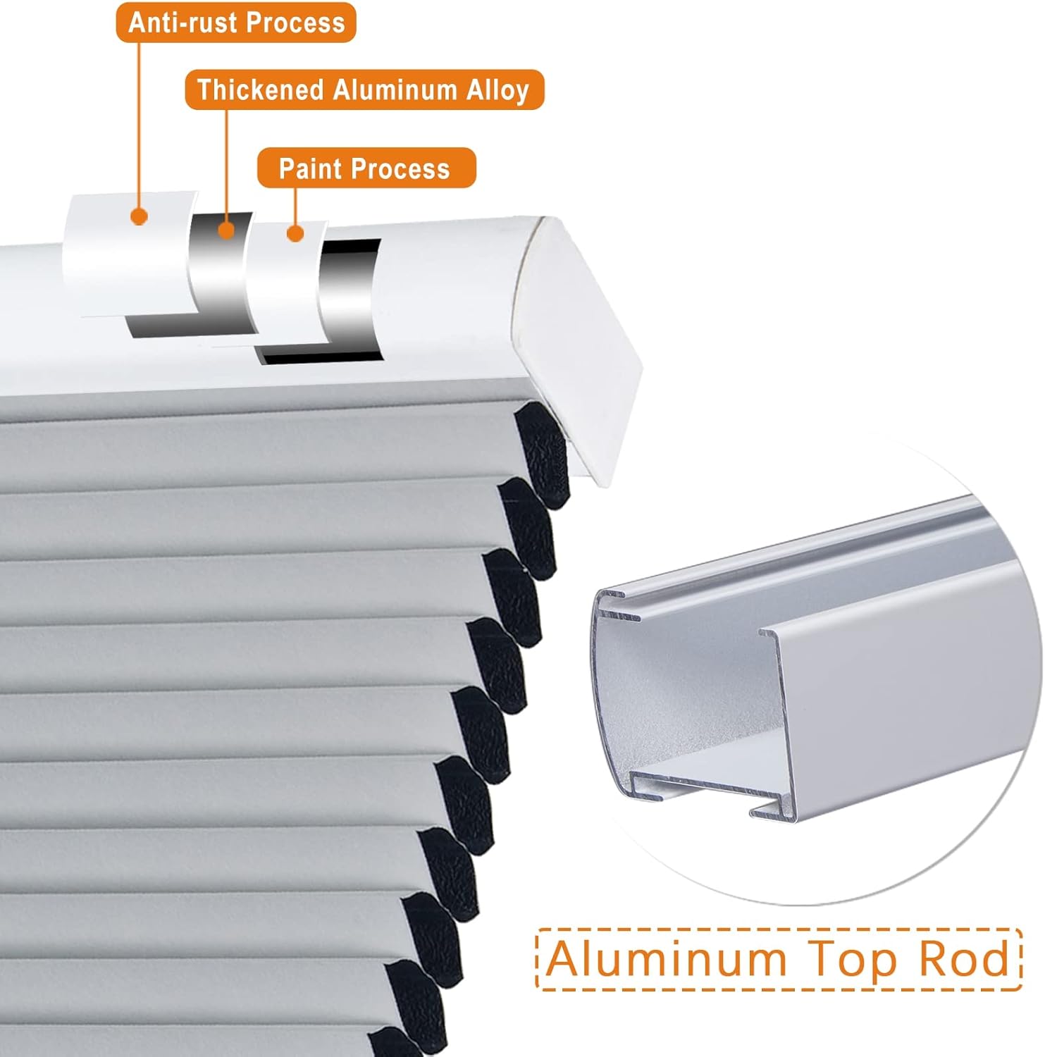 - 【Easy to Clean】The cellular blinds are anti-static, so there is less dust on the fabric. Use a vacuum cleaner to suck gently, and then wipe it with a paper towel.