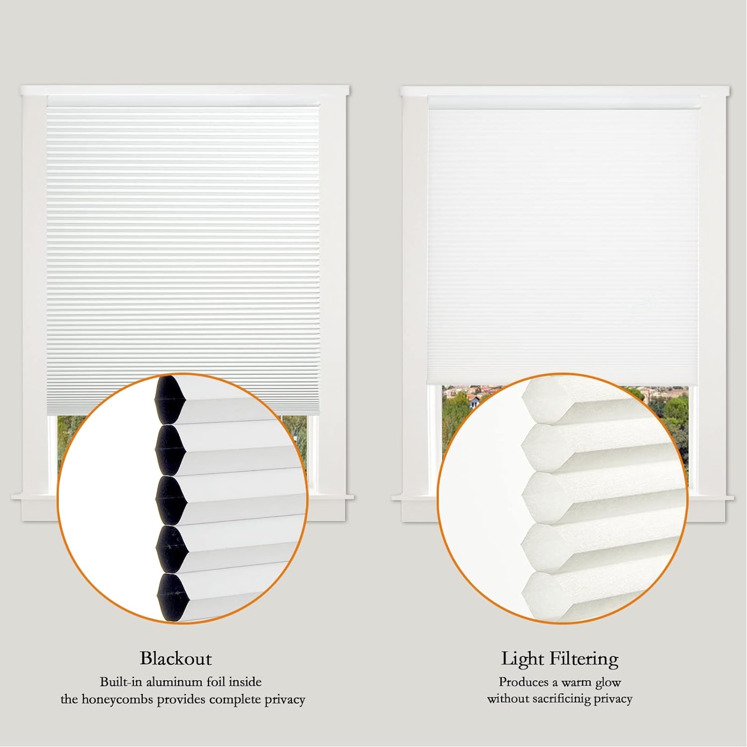 - 【Easy to Clean】The cellular blinds are anti-static, so there is less dust on the fabric. Use a vacuum cleaner to suck gently, and then wipe it with a paper towel.