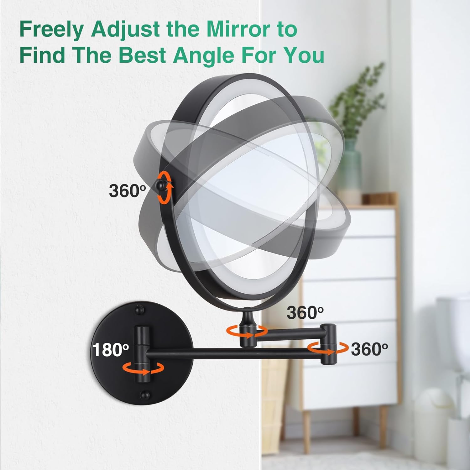 - 【ADJUSTABLE 360°SWIVEL DESIGN EXTENDABLE MIRROR】The magnifying mirror with light can be freely rotated 360 degrees. With flexible arm, the mirror can be adjusted to any angle. Could folds back against the wall when not in use, super save your space.