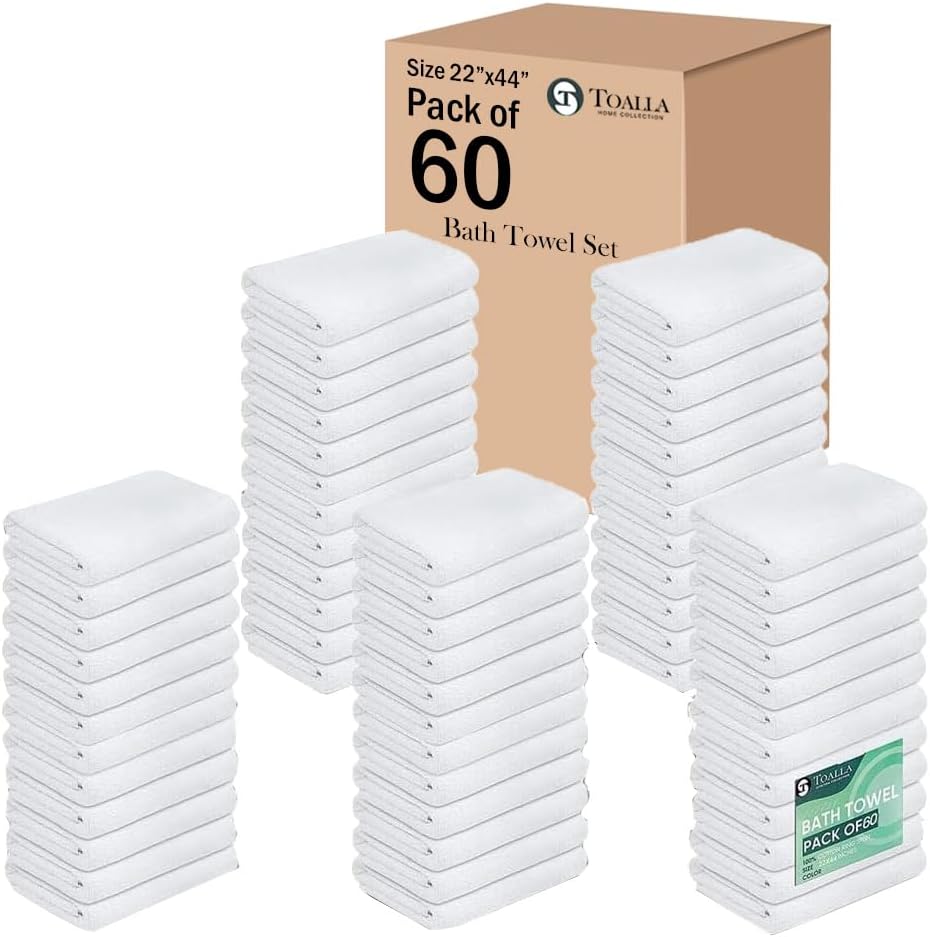 100% Cotton Bath Towel Set Pack of 60|500 GSM|Soft Large Bath Towel|Super Absorbent|Quick Dry|Ideal for Pool Home Gym Spa Hotel|Perfect for Daily Use|Bath Towel Set 24 x 44 Inches|White