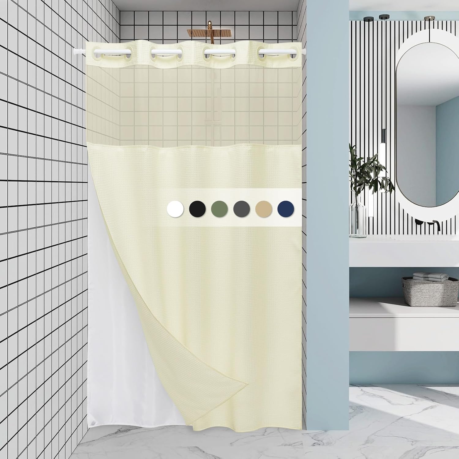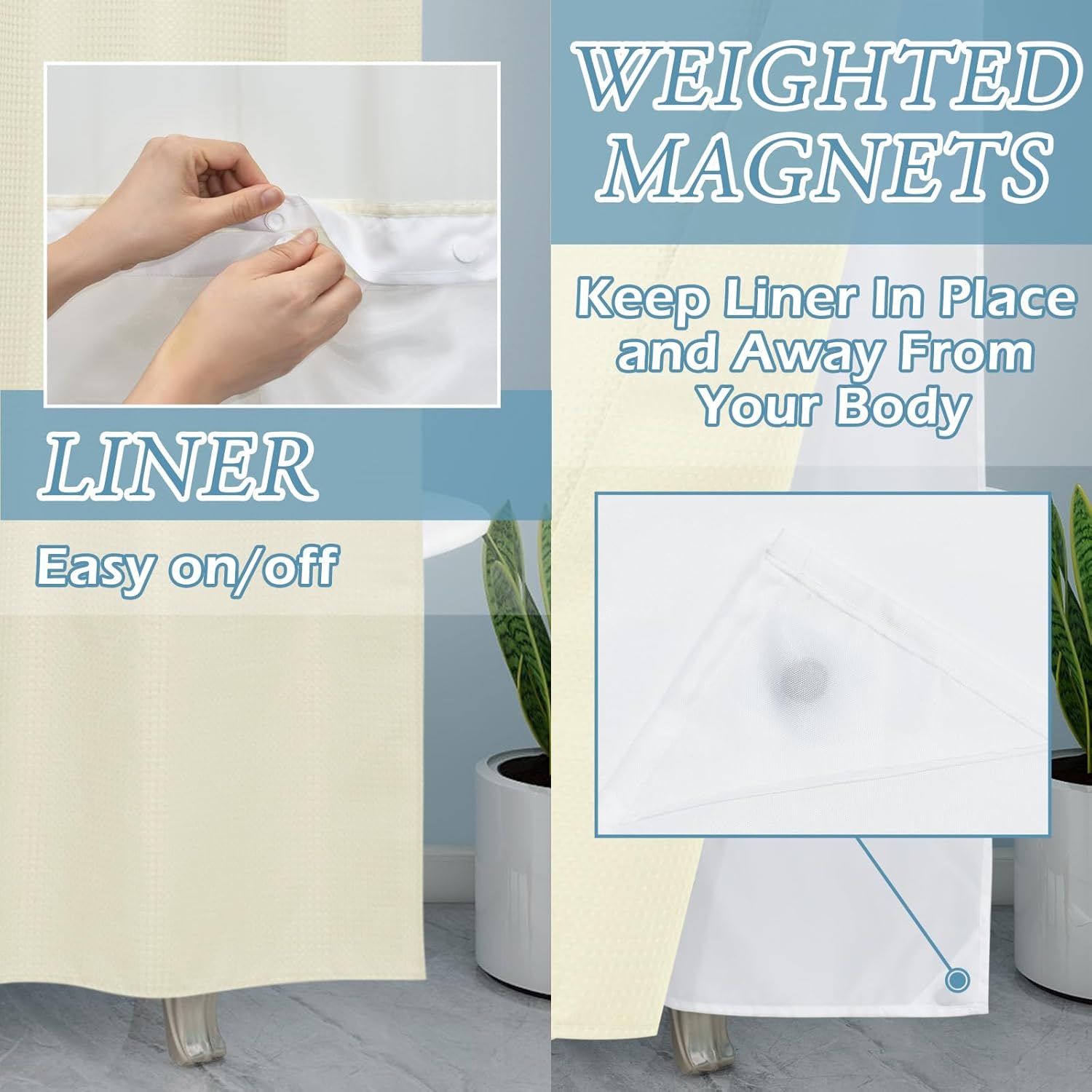 Ivory Stall Hotel Shower Curtain with Detachable Liner - 230GSM Waffle Textured,Hotel Grade,Spa Like Bath Curtain,54W x 80H
