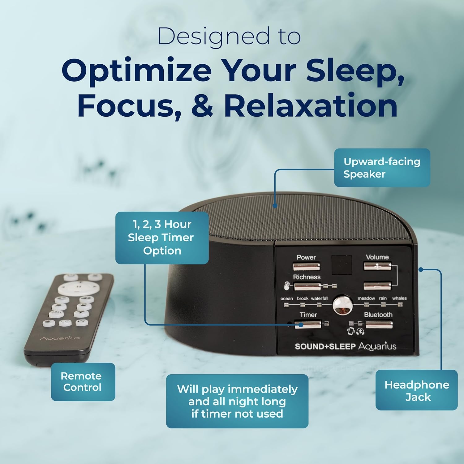- Innovative Sleep Device: Adaptive Sound Technologies Sound + Sleep Aquarius model is a portable sleep machine that includes a Bluetooth speaker and remote, and emits only aquatic sounds