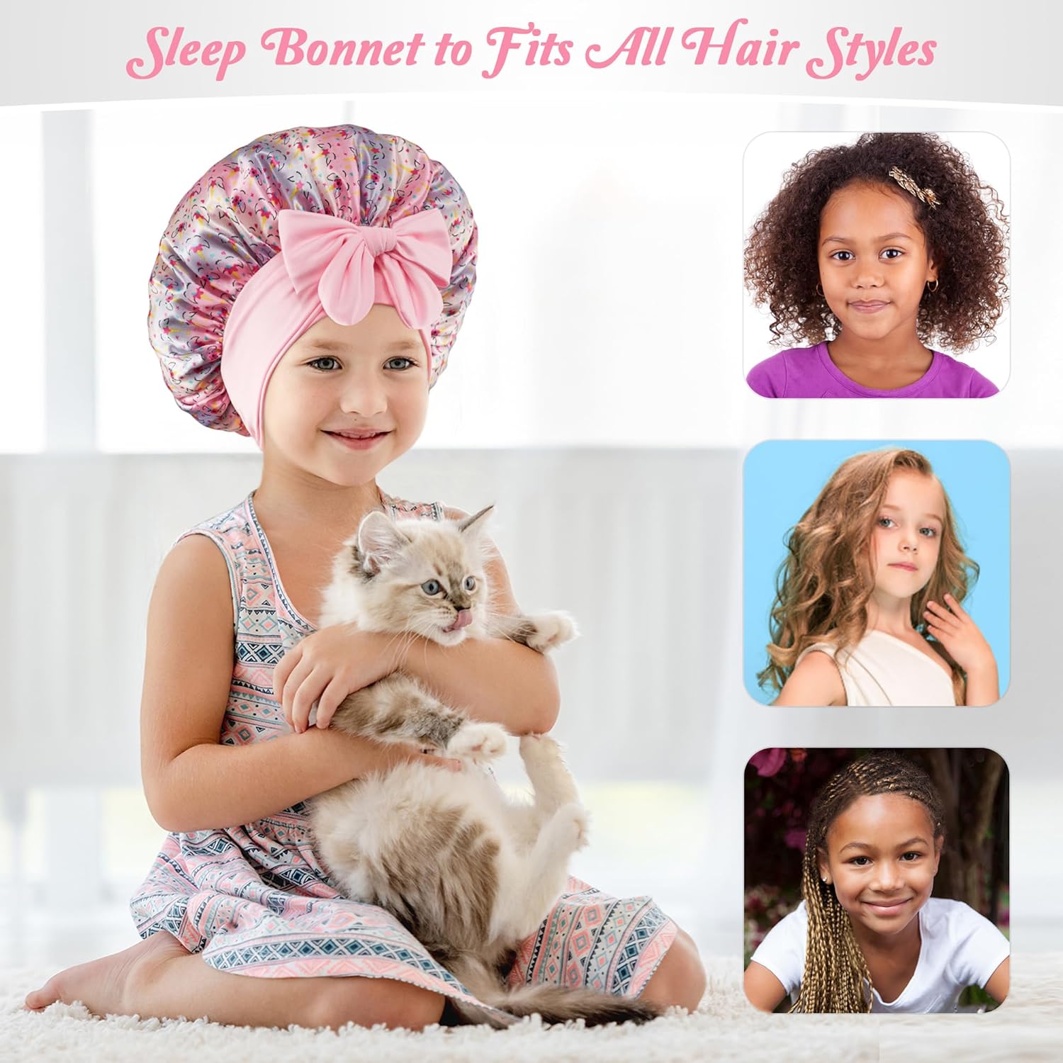 2 PCS Kids Bonnets for Girls, Silk Bonnet for Kids, Satin Bonnet for Sleeping, Baby Toddler Tie Bonnet Sleep Cap