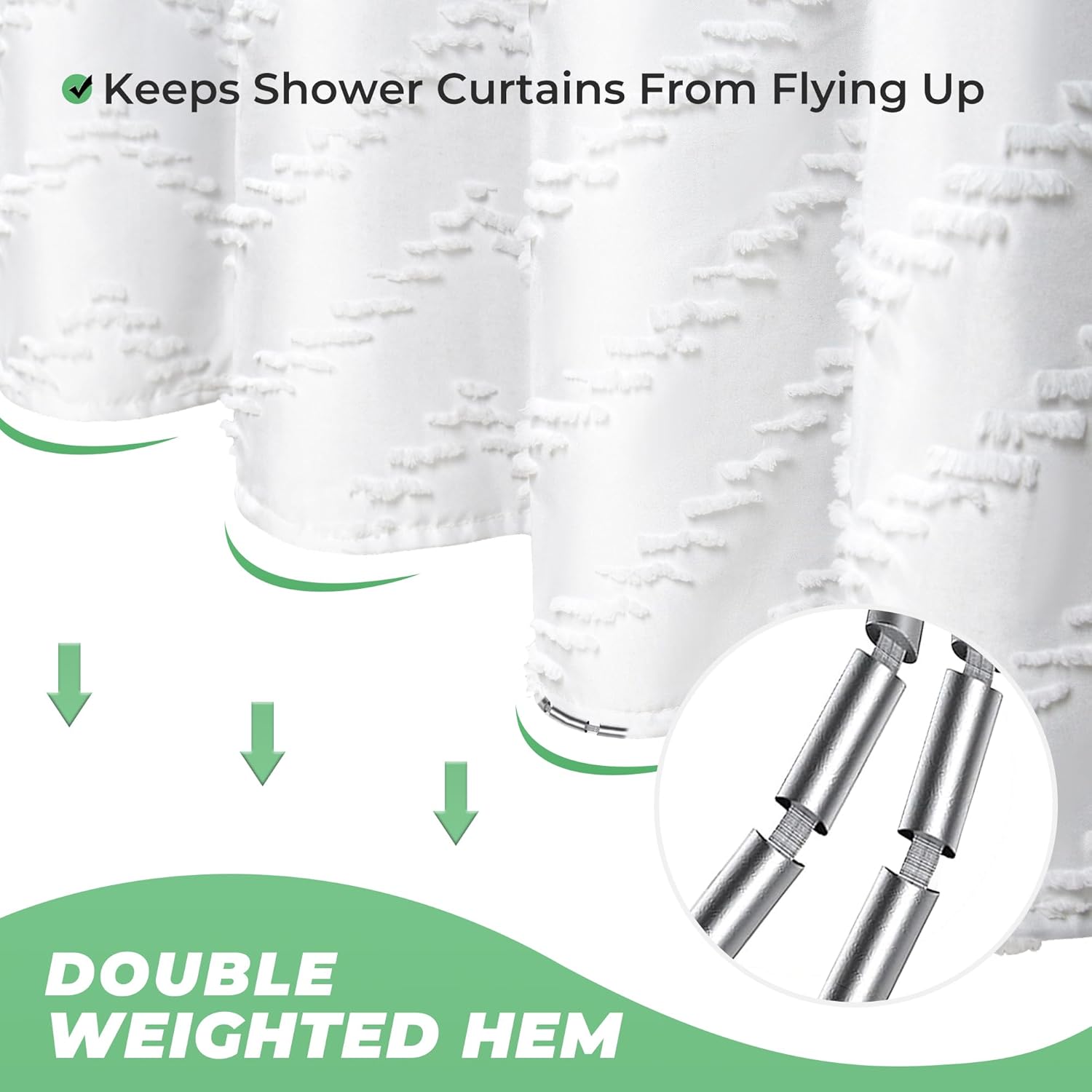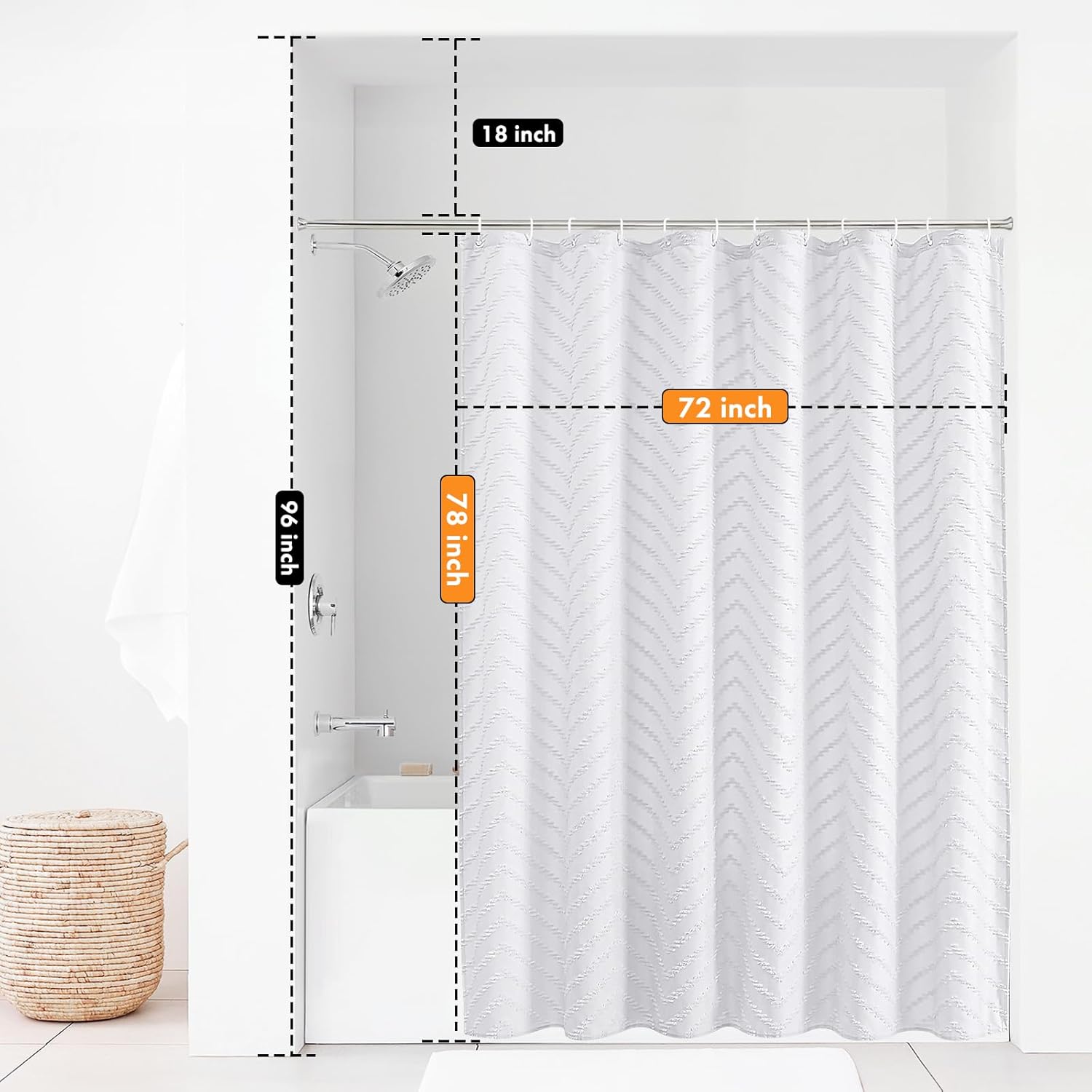 78 inch Shower Curtain Tall Shower Curtain 78 Inches Long White Tufted Chevron Striped Fabric Shower Curtains for Bathroom Modern Shabby Chic Waterproof Cloth Shower Curtains, White