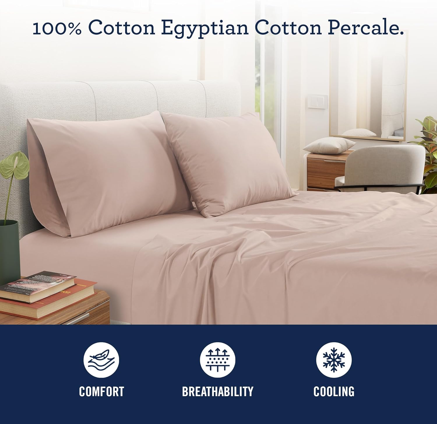 IZOD 100% Egyptian Cotton Sheets Set Twin Size, Cotton Percale Crisp Sheet Set 3Pc, Lightweight & Deep Pocket fits Upto 17", Long-Staple Soft Combed, Hotel Style Luxury Bedding Sheet - Blush Rose