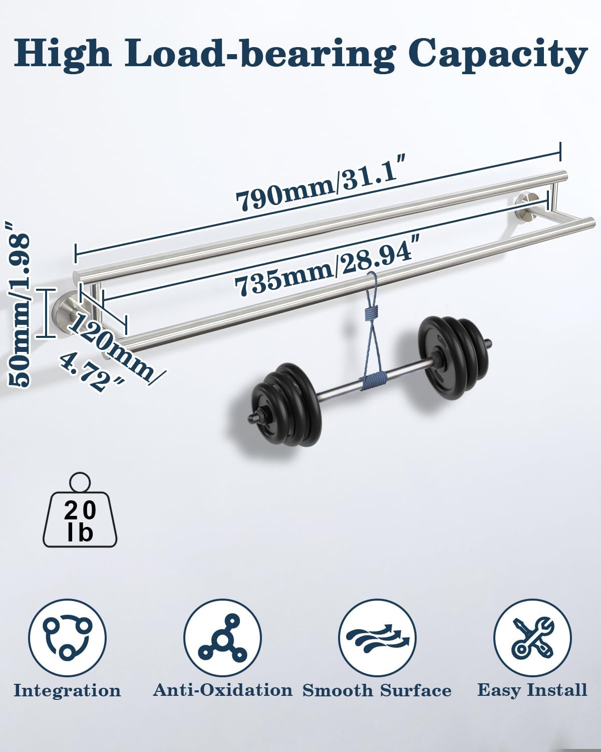 Alise Double Bath Towel Bars Towel Racks for Bathroom Lavatory,32 Inch Wall Mount Towel Holder SUS304 Stainless Steel Towel Hanger Towel Rail,GYT6902-800-LS Brushed Nickel