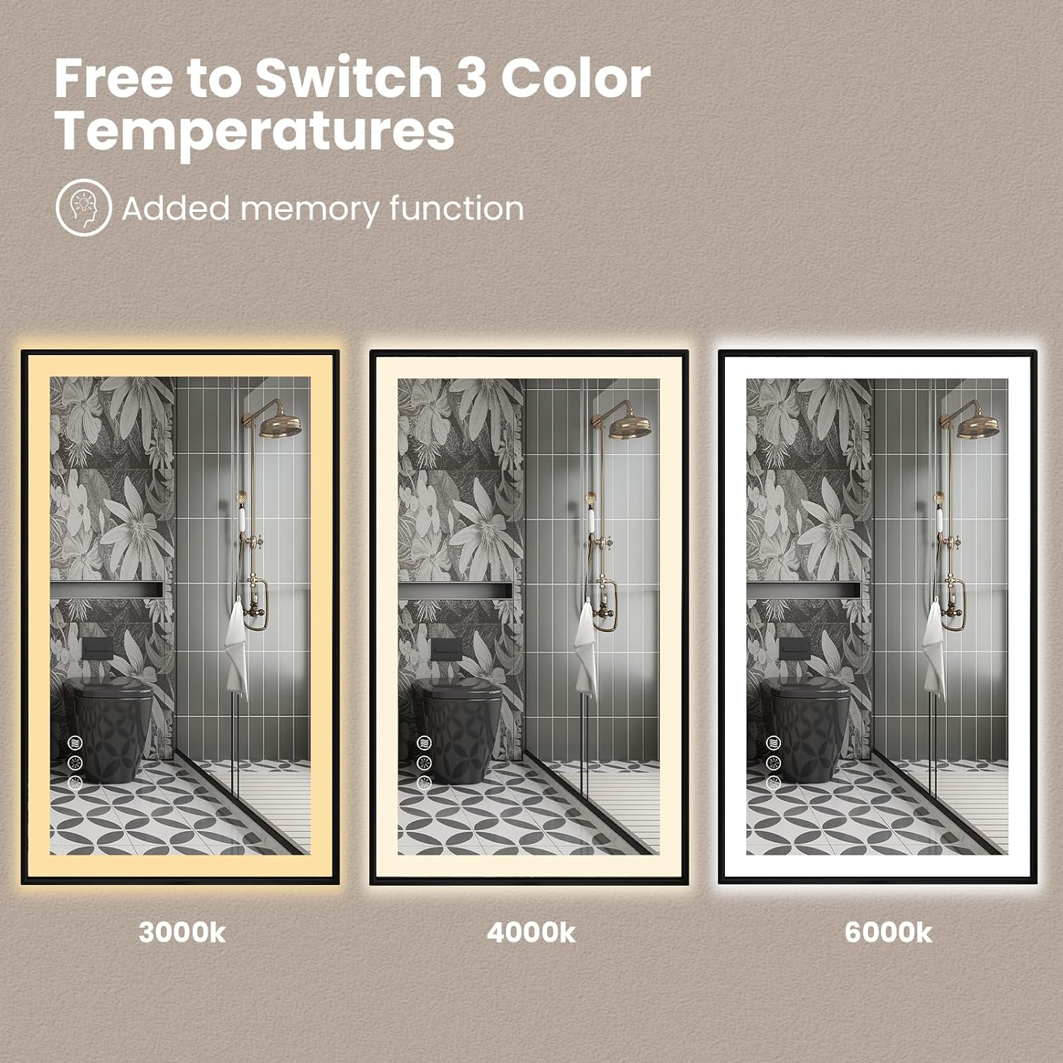 Amorho 48"x 32" LED Bathroom Mirror with Black Frame, Front Light and Backlit(Controlled Separately), Stepless Dimmable, Anti-Fog, Shatter-Proof, 3 Colors, Memory