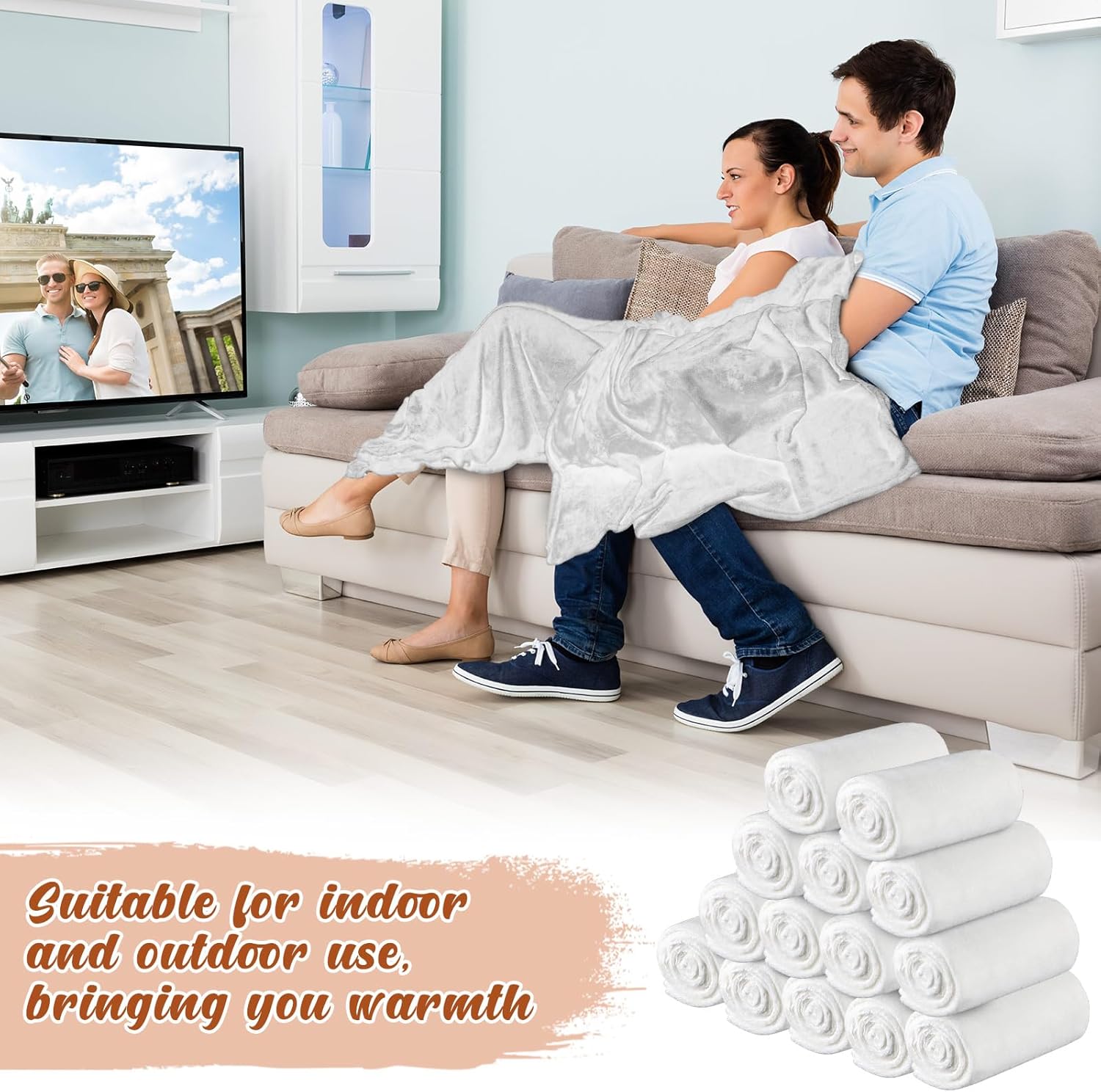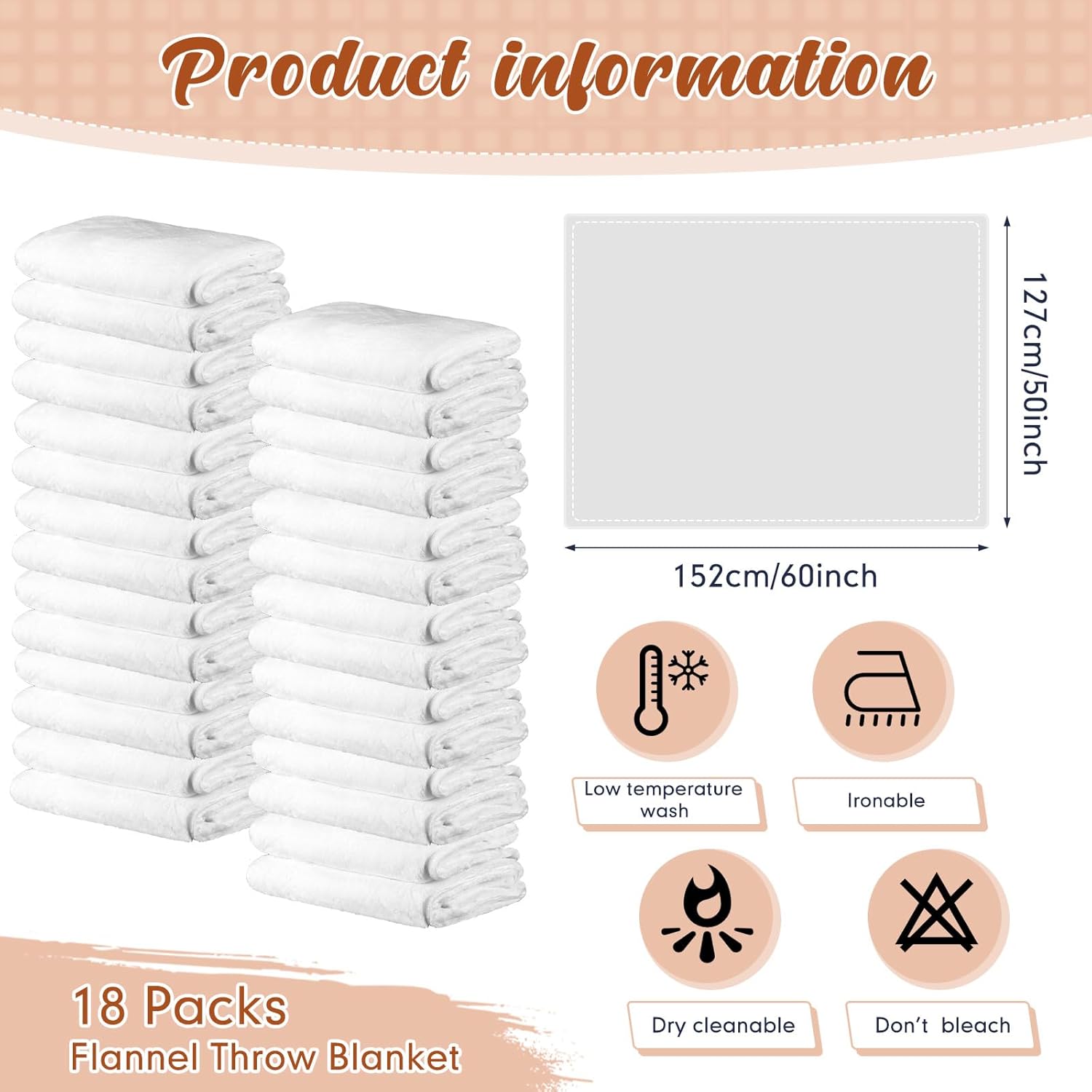 18 Pieces Fleece Blankets Bulk for Wedding 50 x 60 Inch Soft Lightweight Flannel Throw Blankets Bulk for Wedding Guests Home Outdoor Couch Sofa Bed Gifts(Cream White)