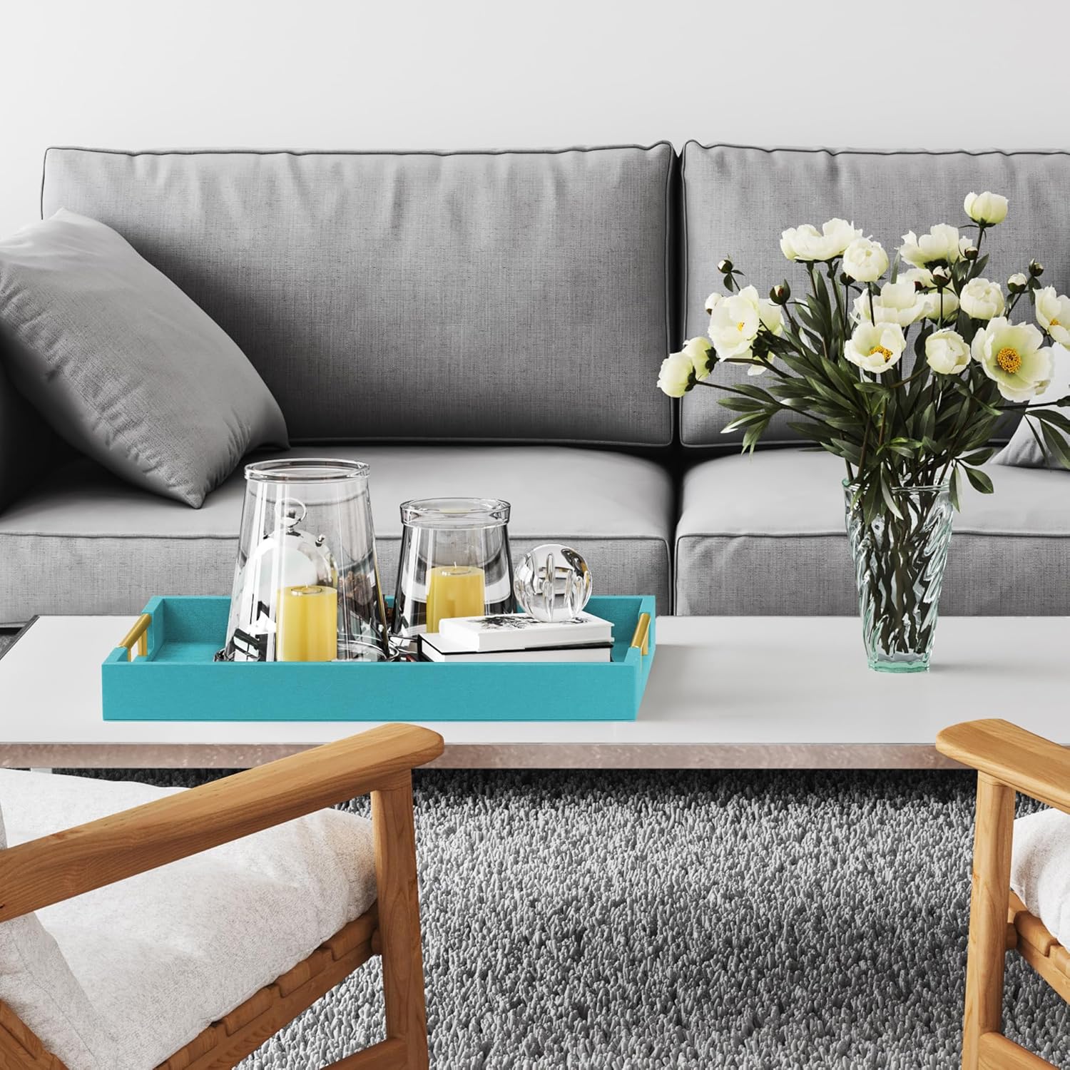 - ELEGANT AND STYLISH: Gorgeous faux leather with exquisite polished gold handles brings this unparalleled looking luxury tray. The maximum suitable for all decoration styles of home or commercial premises. You can keep it in your living room, nursery, kitchen, bedroom, bathroom.