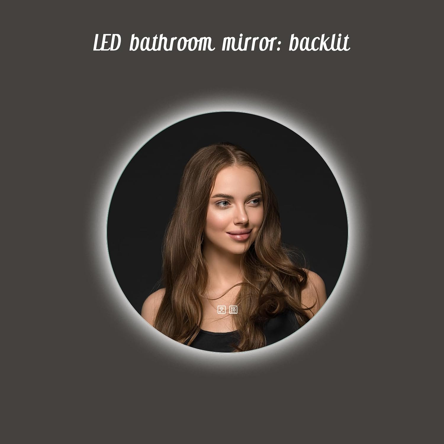 APRILSOUL 36 Inch Round LED Backlit Bathroom Mirror, Vanity Mirror with Anti-Fog, Touch Button, 3 Colors and Dimmable Light