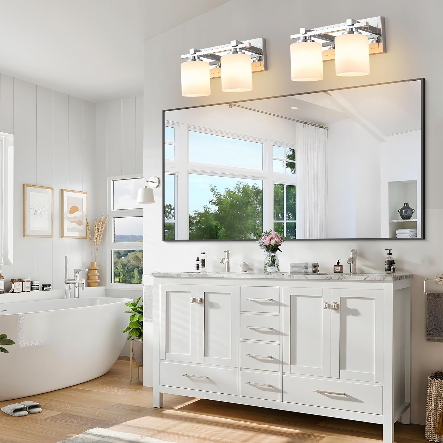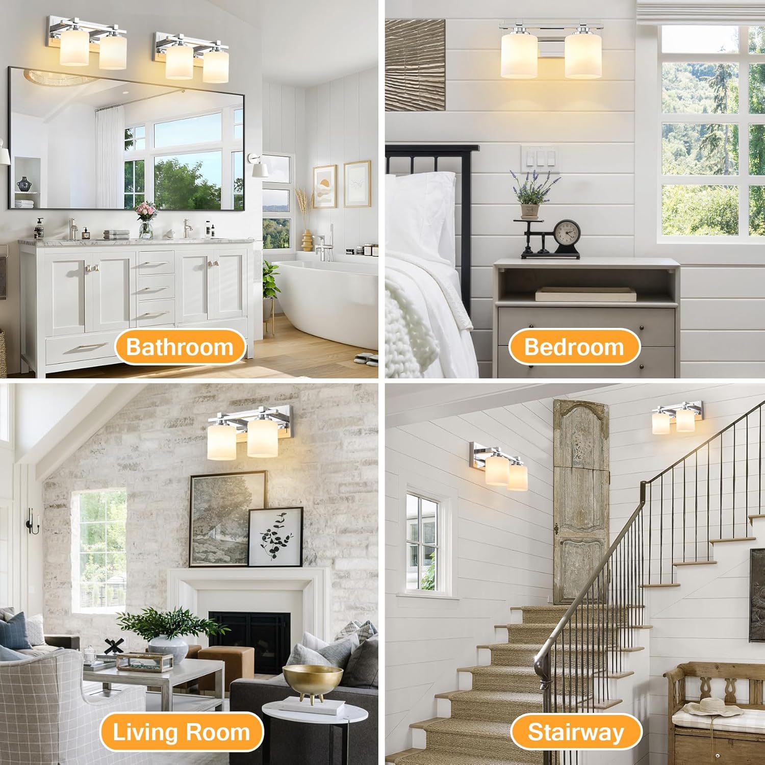 - 【Upgrade Unique Design】 The high quality brushed nickel metal base of chrome bathroom vanity light, exudes a simple and pure beauty, reflecting a high quality texture. Combined with the milky white glass shade hue, it shows a sophisticated modern style. They are also resistant to rust and corrosion, ensuring their longevity and reliability. Say goodbye to frequent replacements and enjoy the beauty of bathroom lighting fixtures for years to come.