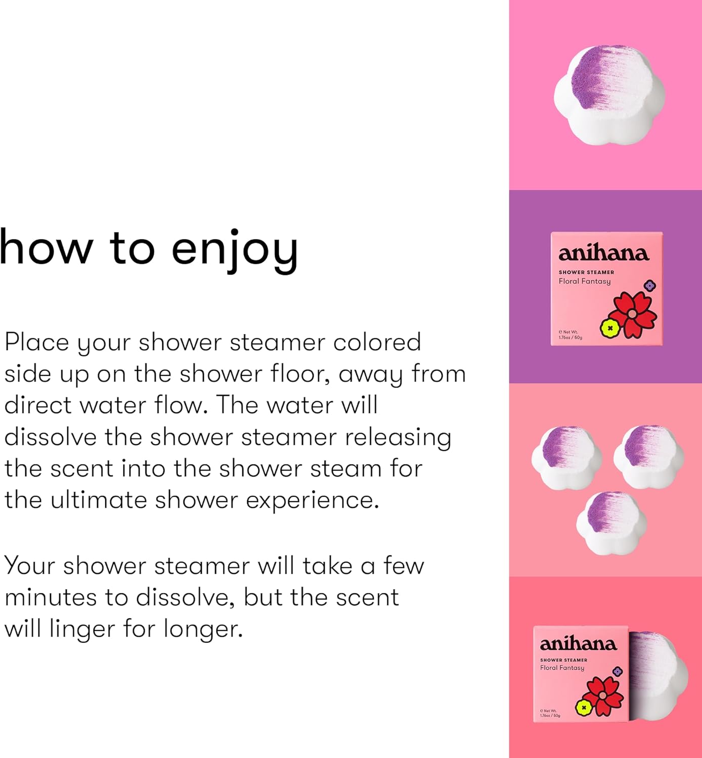 - VIBRANT SCENT: A bouquet of freshly picked floral notes, an Anihana Floral Fantasy Shower Steamer evokes a stroll through a calming, springtime meadow