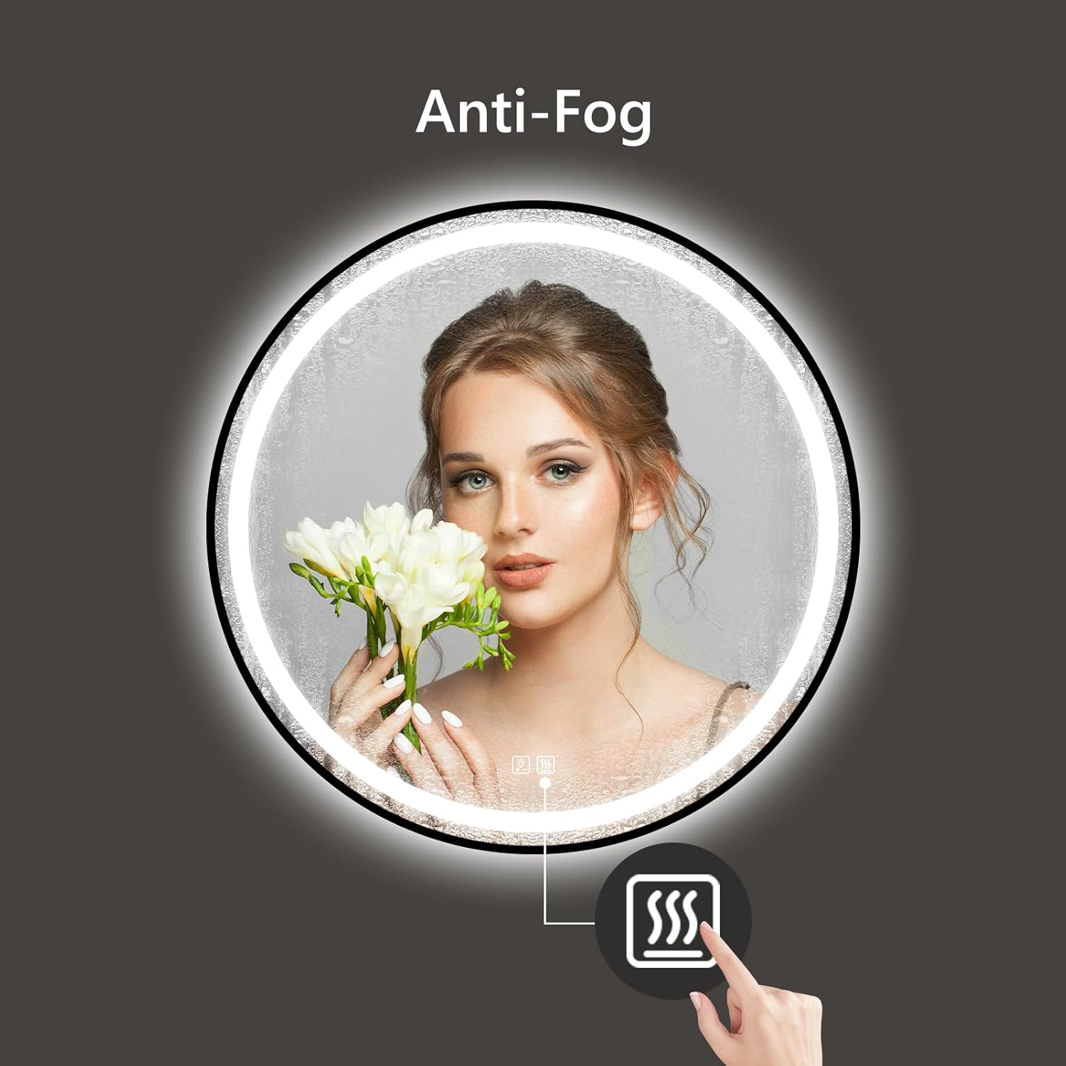 - Anti-Fog: Built-in defogger ensures the LED vanity mirror stays clear and fog-free and it can complete defogging in 5-10 minutes. (one-hour power auto off) .