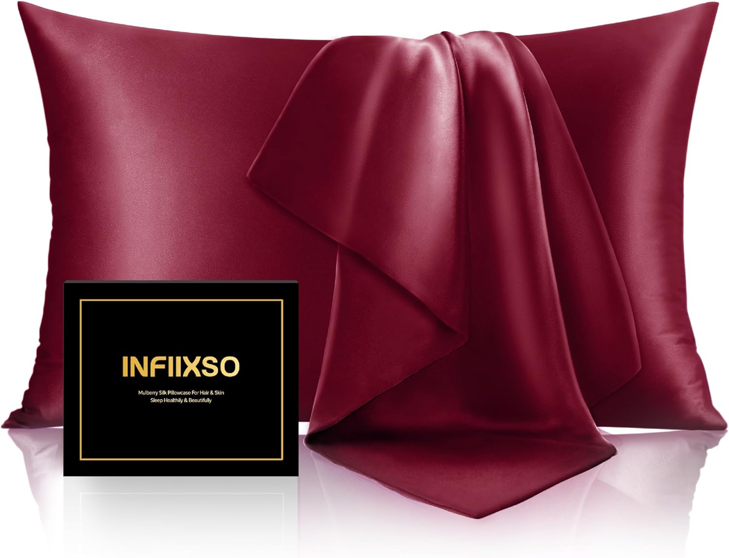 INFIIXSO Mulberry Silk Pillowcase for Hair and Skin, Silk Pillow Cases Standard Size with Hidden Zipper 20x26 Inches, Super Smooth and Soft Cooling Pillow Cases for Hot Sleepers(Burgundy, 1 Pack)