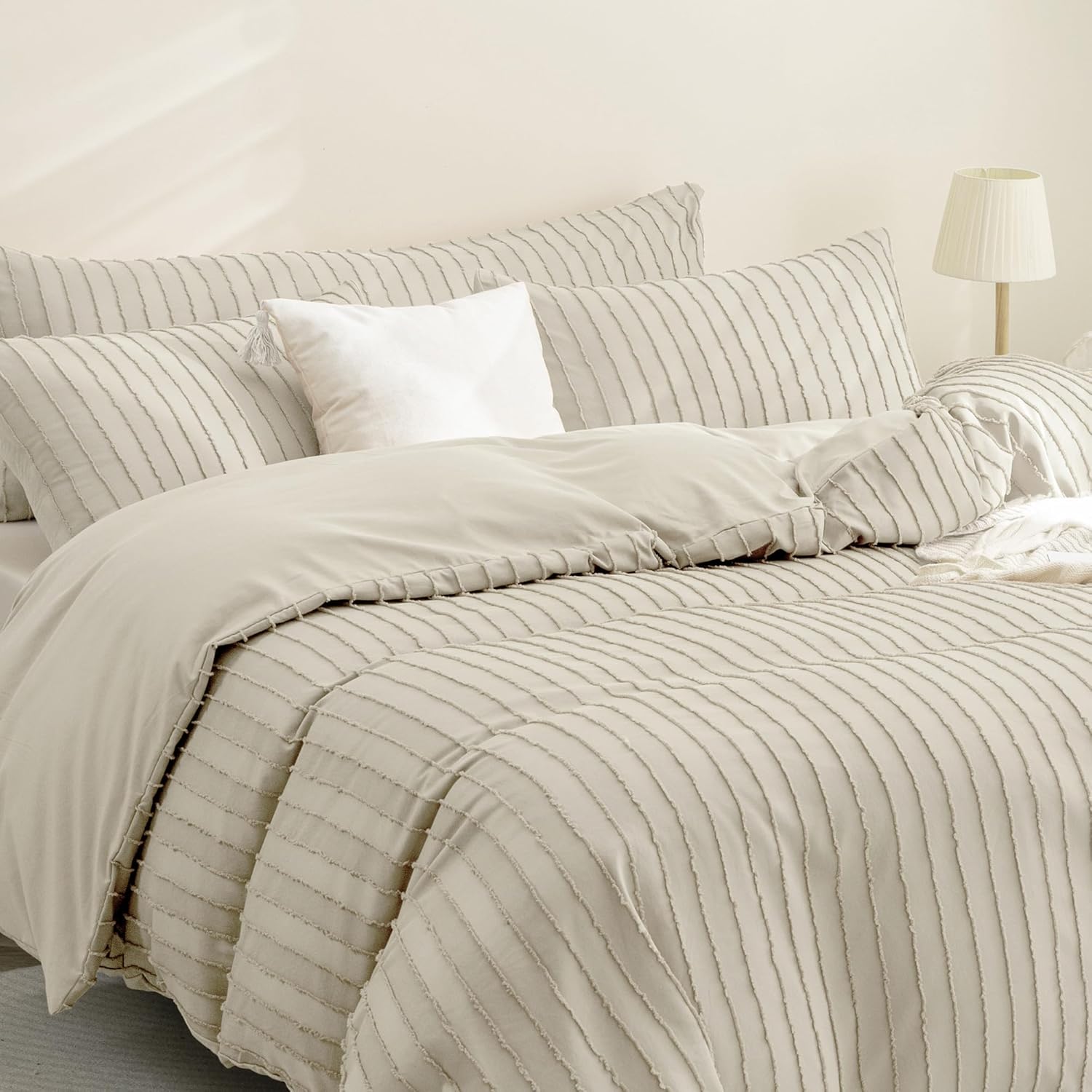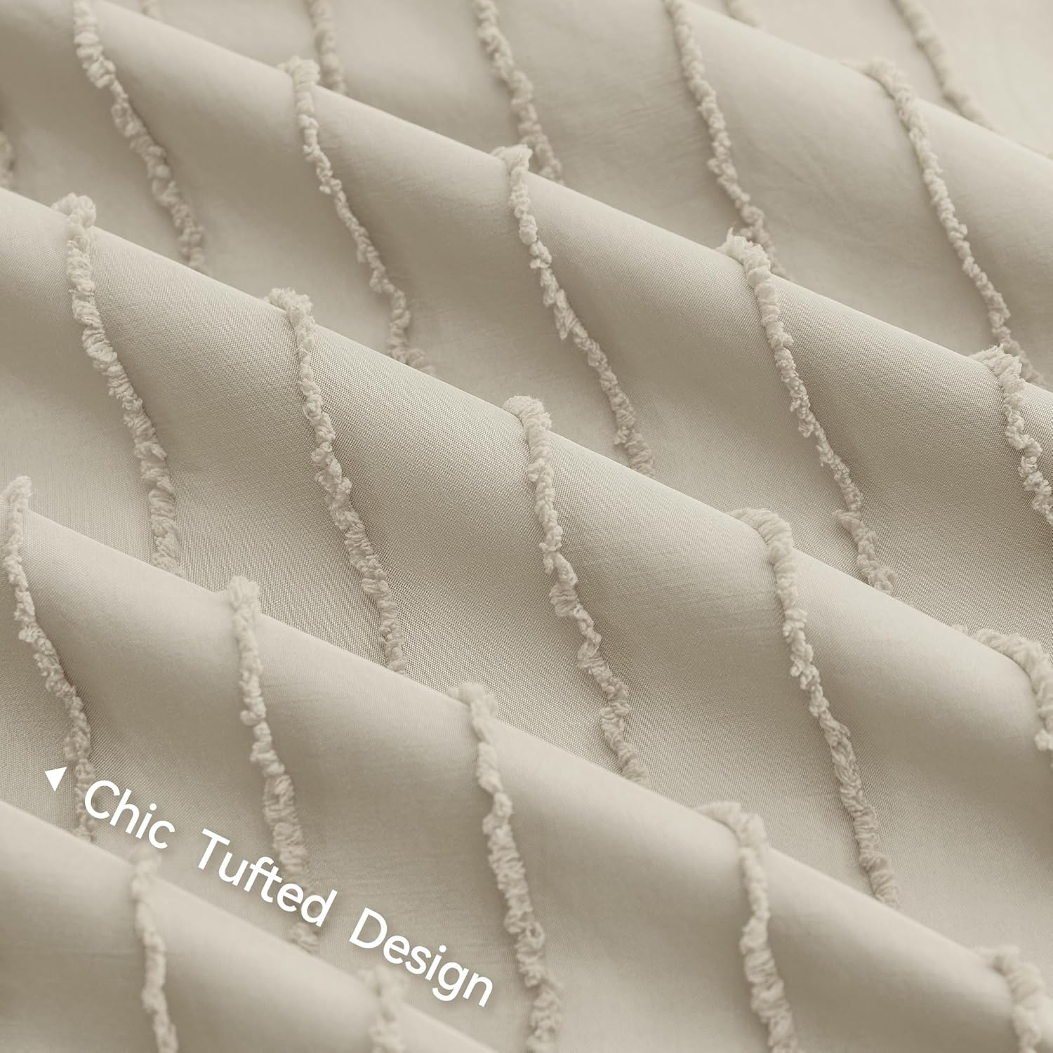 JELLYMONI Duvet Cover Oversized Queen Size Light Khaki - 3PCS Boho Striped Duvet Cover Set Polyester Tufted Bohemian Textured Comforter Cover 98×98in with Corner Ties & Zipper and 2 Pillowcases