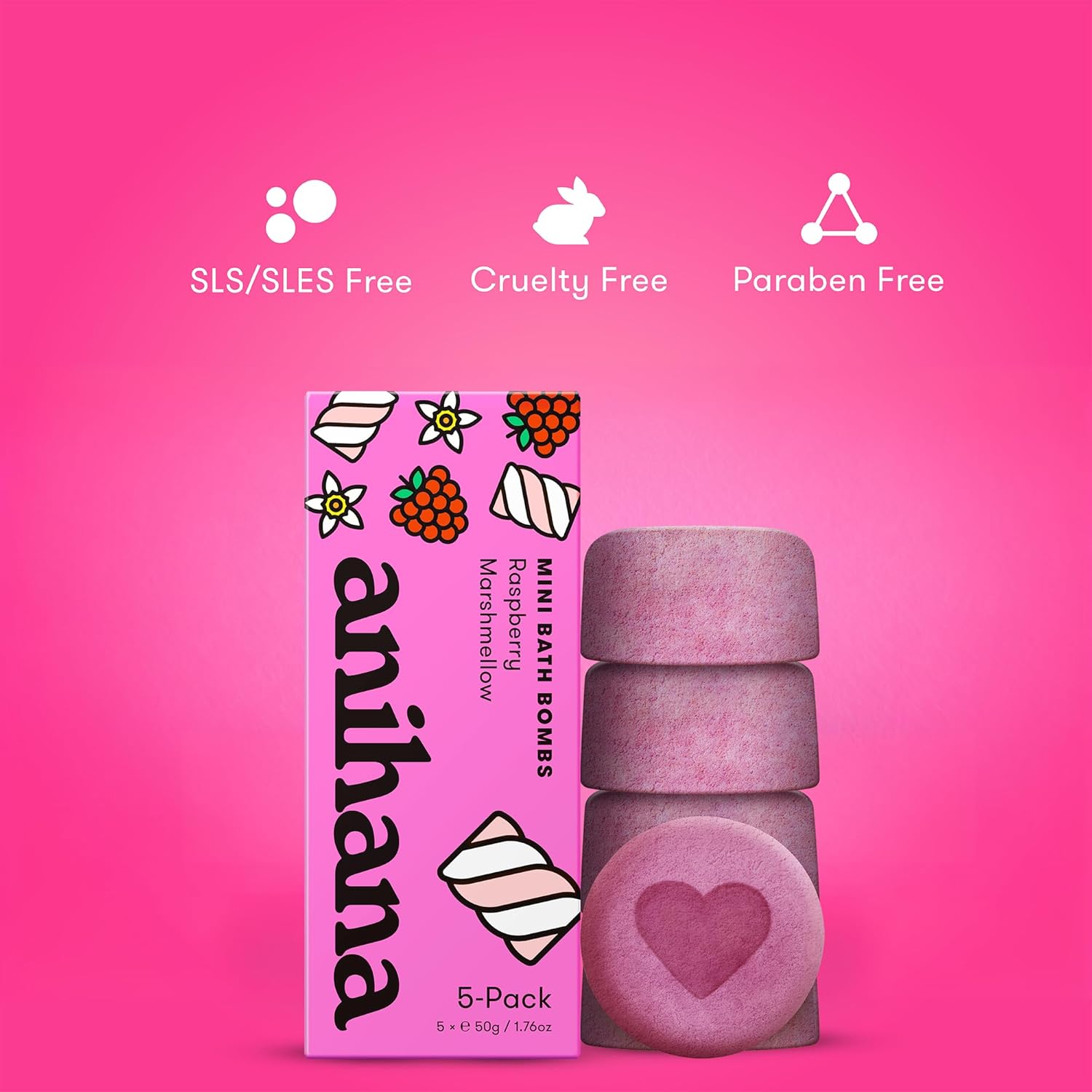 - HYDRATING & NOURISHING: Anihana Raspberry Marshmellow Mini Bath Bomb provides a fun & joyful experience with the moisturizing, nourishing goodness of coconut oil