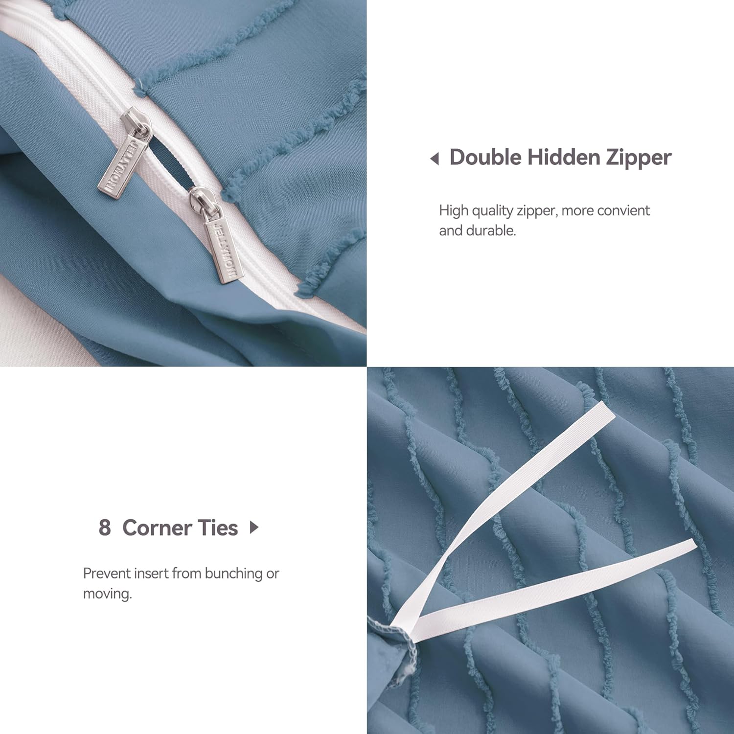 - Material: Tufted bedding set with premium polyester, offer you breathable and ultra soft feeling and you can enjoy a wonderful sleep every night. No deformation and more softness after repeated washing. It is more durable than other material.
