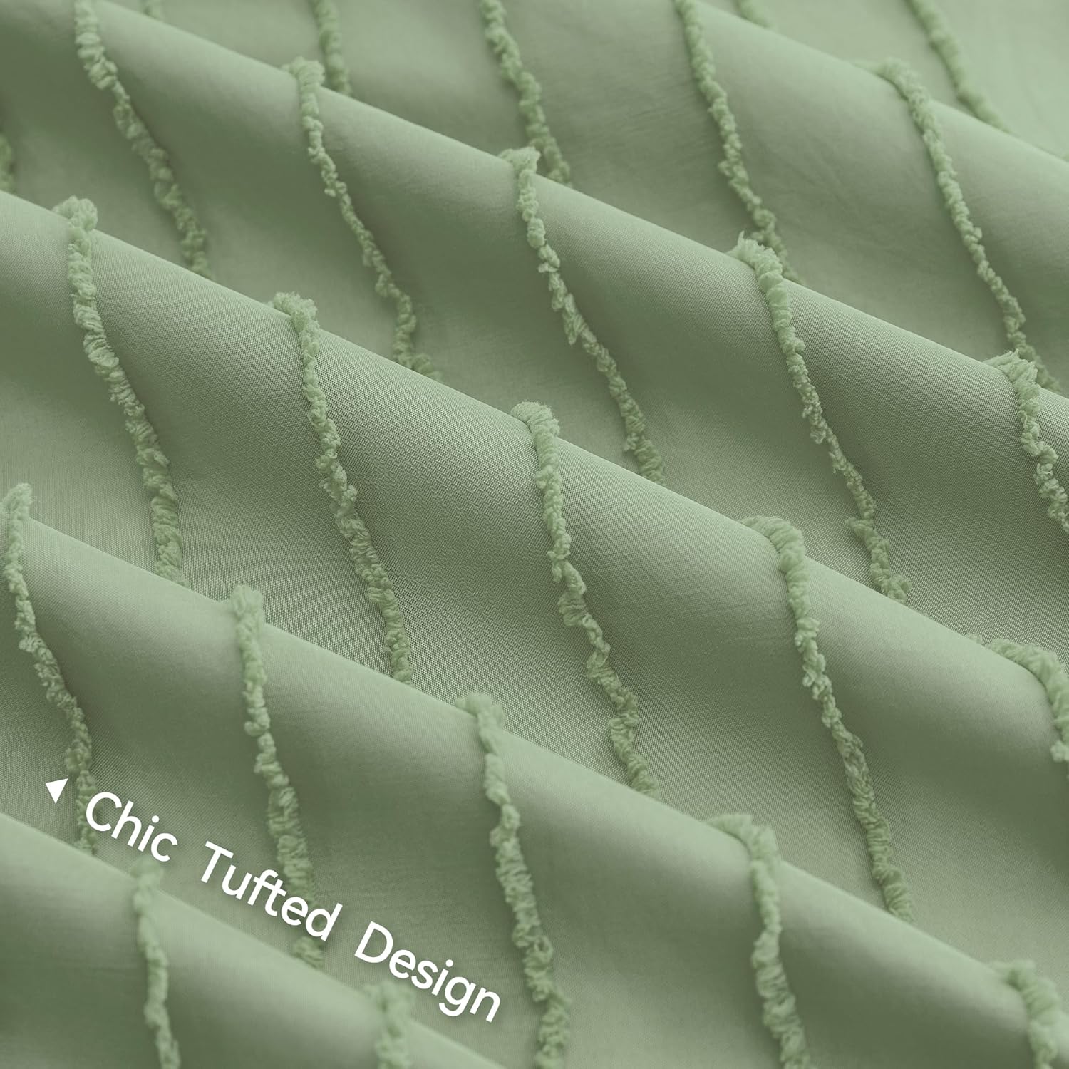 JELLYMONI Duvet Cover Full Size Light Green - 3PCS Boho Striped Duvet Cover Set Polyester Tufted Bohemian Textured Comforter Cover 80×90in with Corner Ties & Zipper and 2 Pillowcases