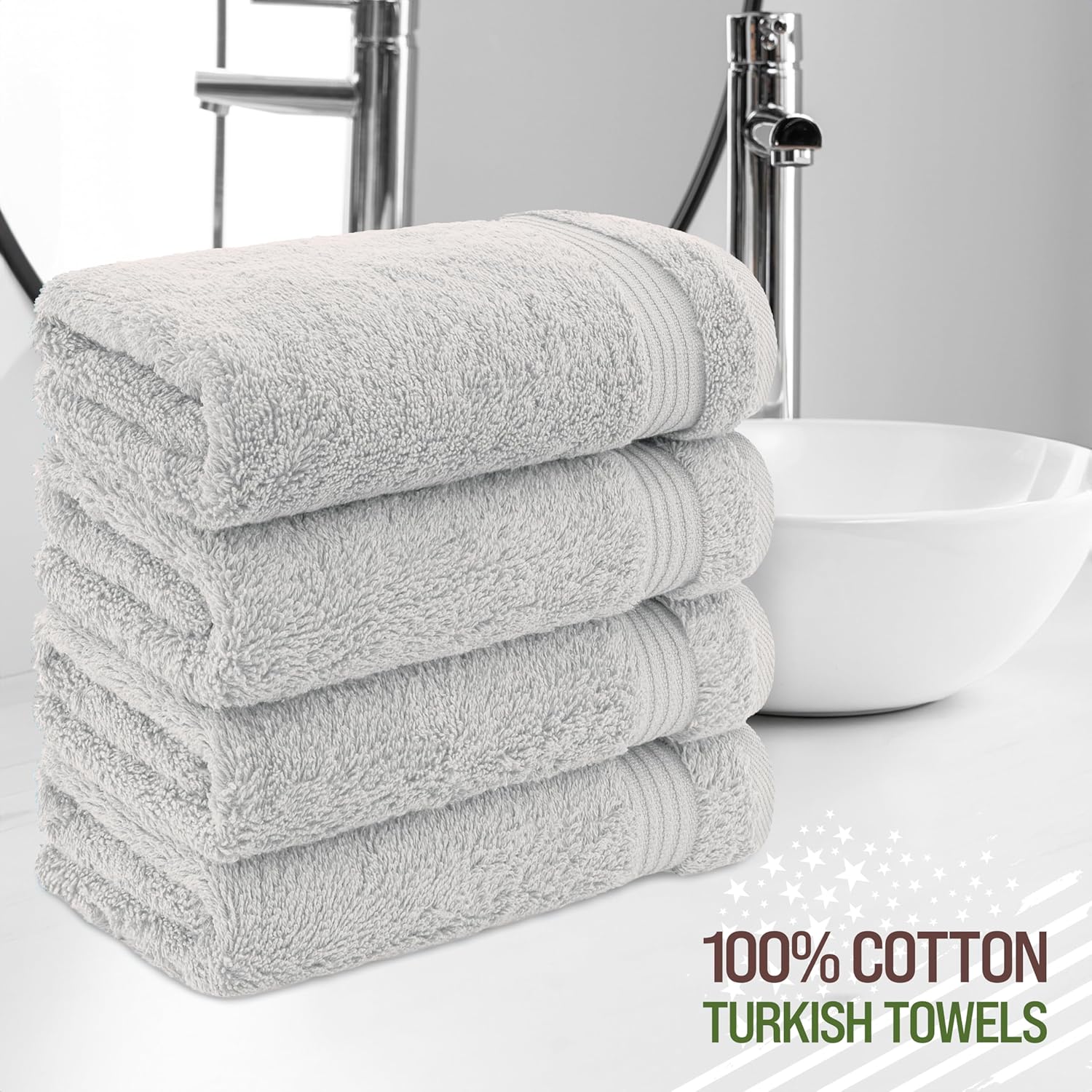 American Veteran Towel, Hand Towels for Bathroom Set of 4, 100% Cotton Turkish Hand Towel Sets, Soft Hand Face Towels, Silver Grey Hand Towels