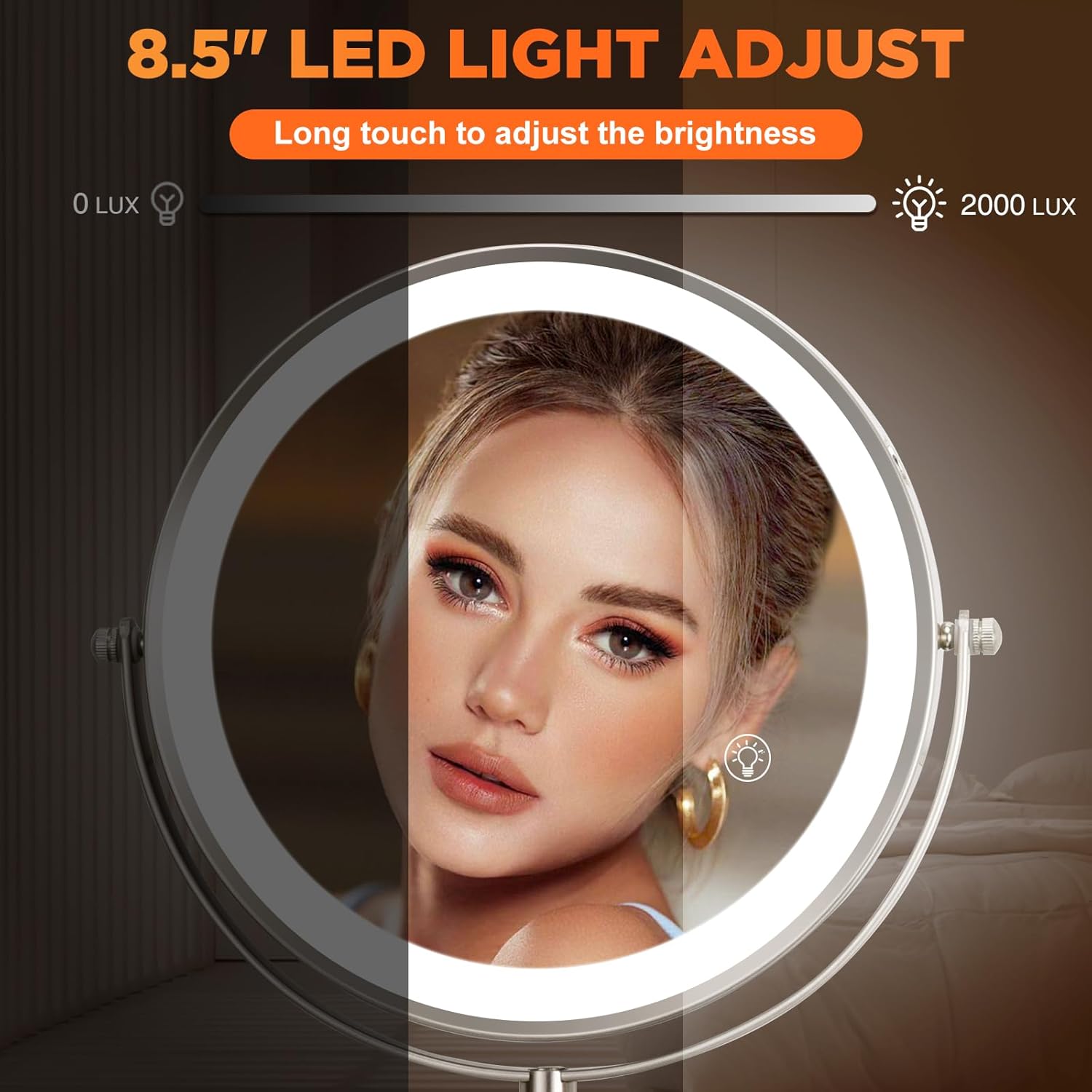 - 【Wall Mounted 3 Color Lighting】This 1X/15X wall mounted magnifying mirror has 3 color lighting: White, Warm and Cool lights, you can apply 3 different light to makeup. It will providing soft and stable lights to cover all corners of your face and reflect true makeup colors. Our lighted mirror can touch the switch to change light color and long press to adjust brightness to meet your different needs.