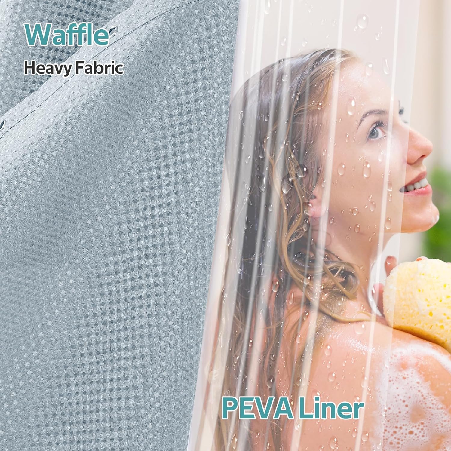 - Products Include: 1 Waffle Shower Curtain, 1 Shower Curtain Liner, 12 Double-sided Hooks. (Total 14 PCS)