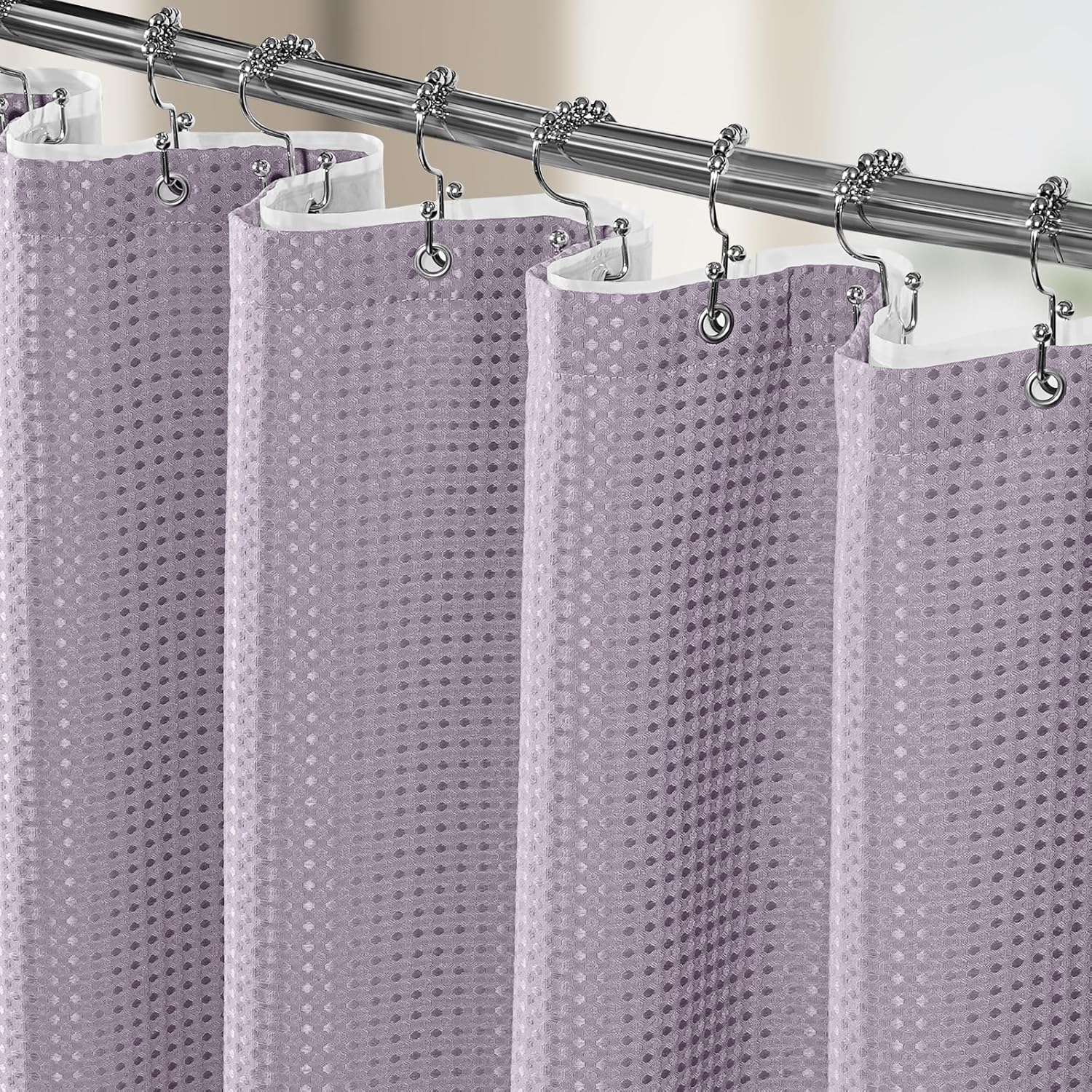 3 in 1 Shower Curtain Set, Waffle Shower Curtain and Liner Set with 12 Double Sided Shower Curtain Hooks, 258GSM Luxury Weighted Cloth Shower Curtains for Bathroom, 72 W x 72 H, Lavender