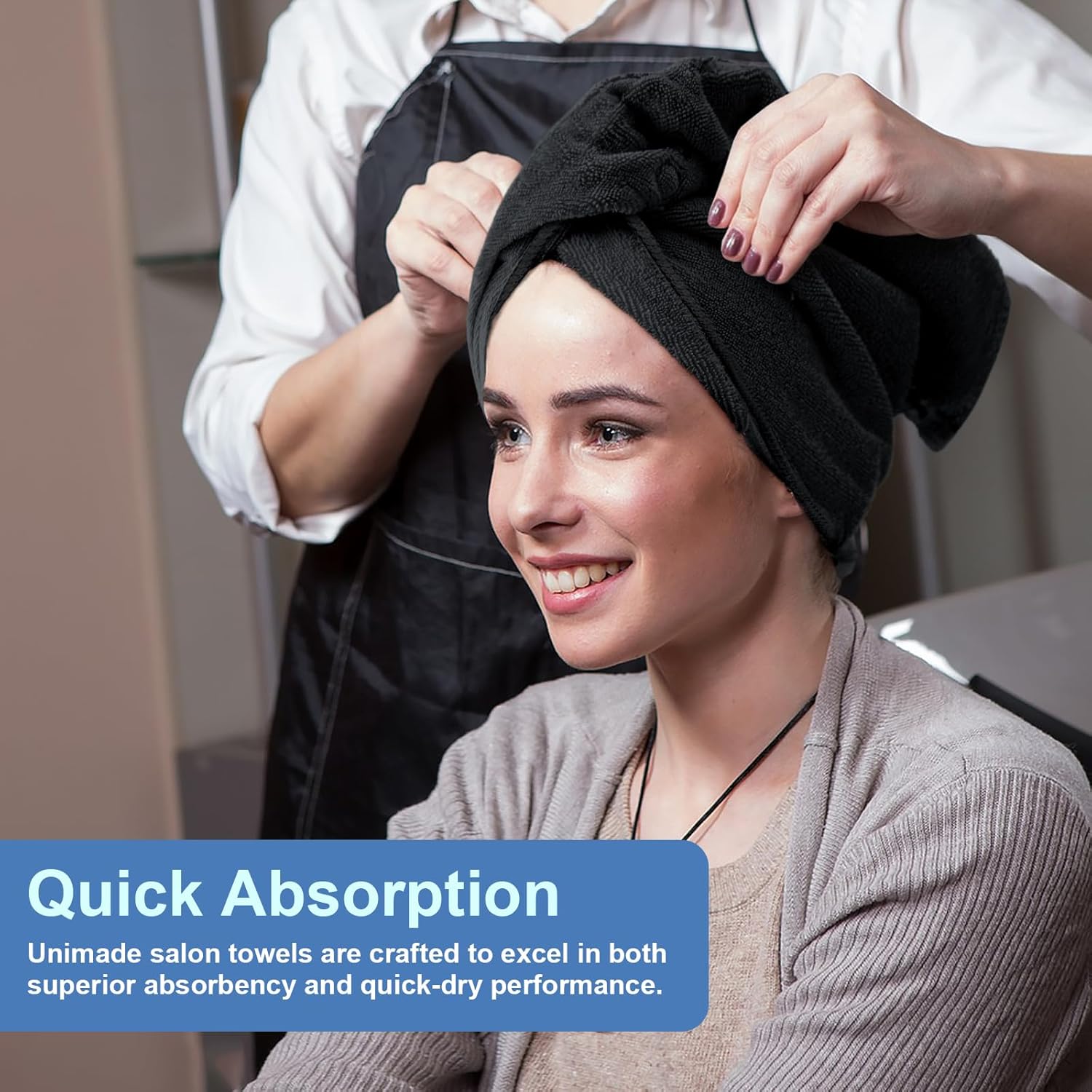 - Comprehensive 48-Pack: This towel set includes 48 black salon towels, each measuring 16x27 inches, offering a high-value solution for commercial and personal use. Made from microfiber, these towels efficiently dry wet hair and skin with minimal effort, saving valuable time during salon or grooming services