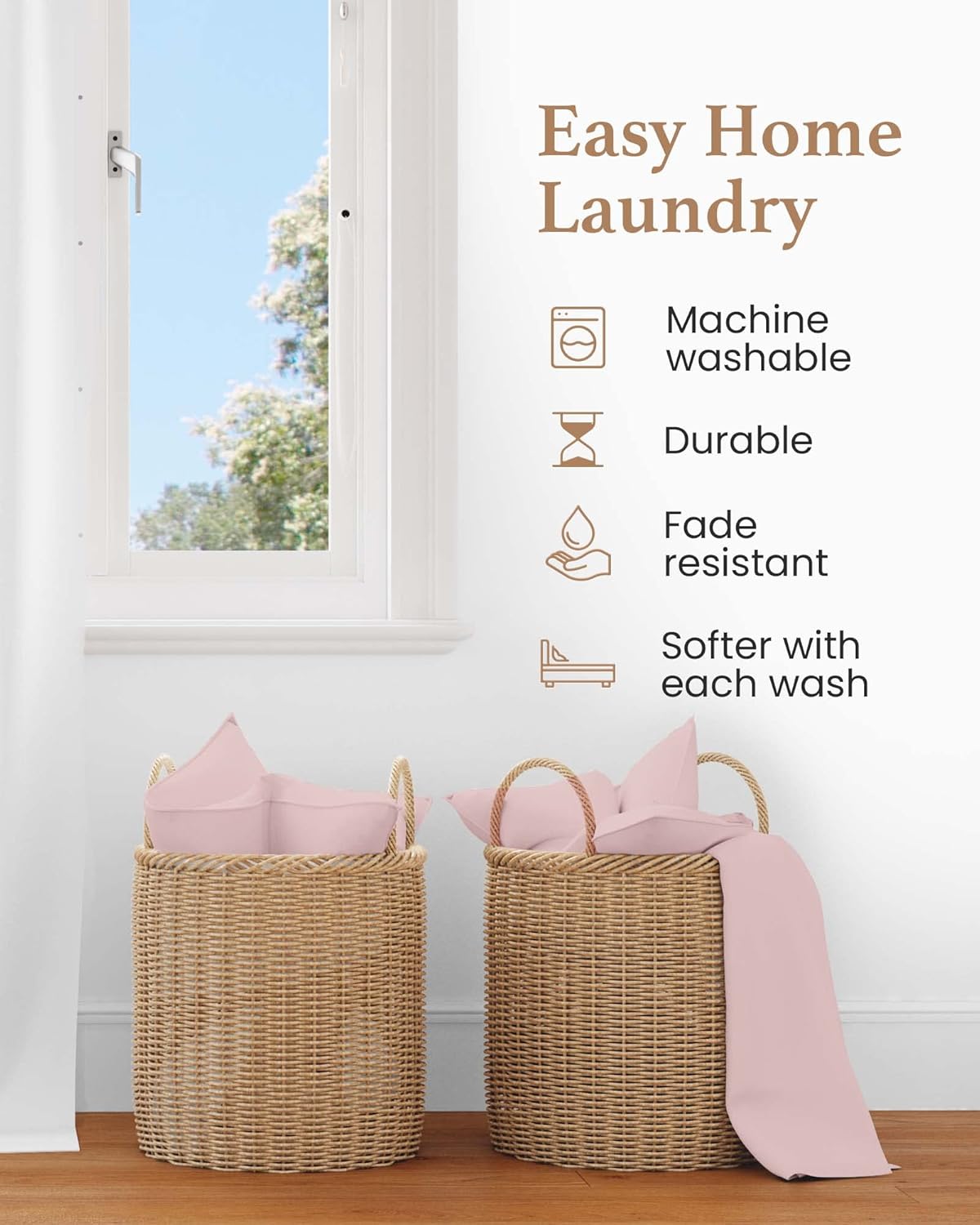 4 Pc Blush Twin Sheet Set for Twin Mattress, Egyptian Cotton Twin Bed Sheets for Twin Size Bed, Soft Breathable 16 Inch Deep Pocket Twin Bed Set - 1 Fitted Sheet, 1 Flat Sheet & 1 Pillow Case