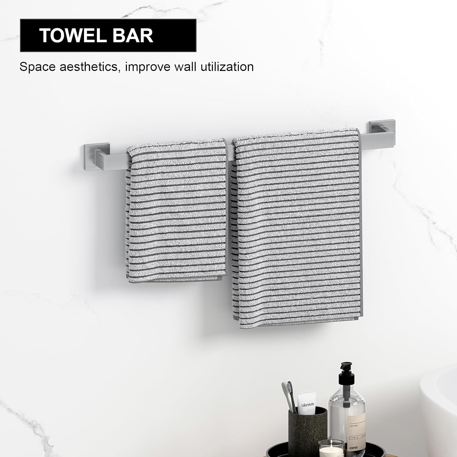 5-Pieces Brushed Nickel Bathroom Accessories Set, 23.6 Inch Bath Towel Bar Set, Stainless Steel Bathroom Hardware Set, Towel Racks for Bathroom Wall Mounted.
