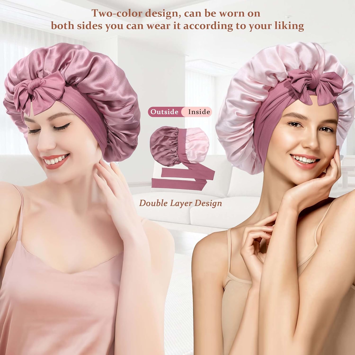 - 【Two-color design】This silk bonnet has two layers, inner and outer, and is composed of two different colors. You can choose which side to wear according to the color of your clothes. It is equivalent to buying two sleeping caps for the price of one sleeping cap, which is very cost-effective