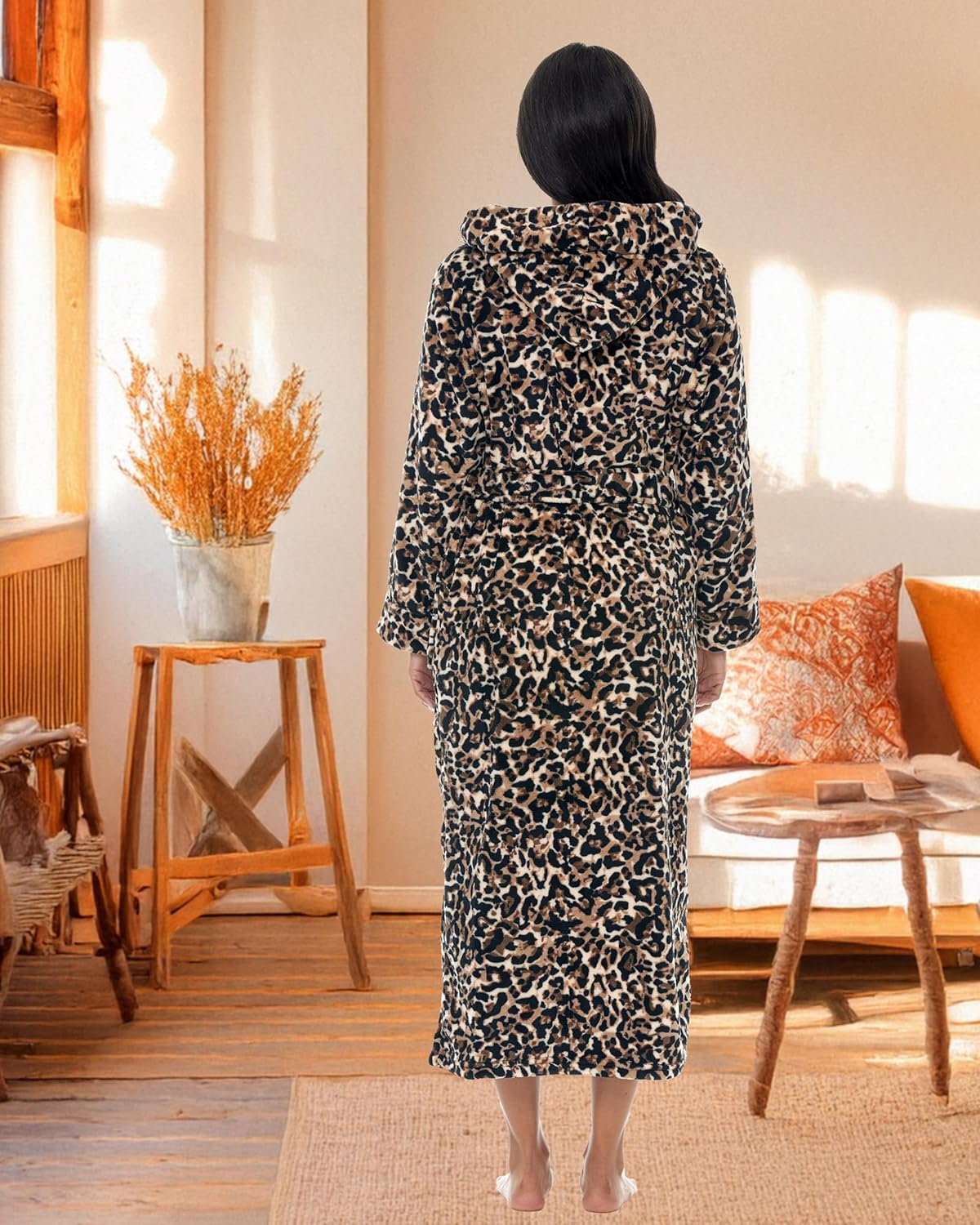 - THICKER - 2 times thicker than average fleece robe for women bathrobe. Hooded Bath robes female with male versions also available. The ideal, stylish housecoats for women for Fall and Winter. Plus size 3X, Desert Leopard robe by Alexander del Rossa.