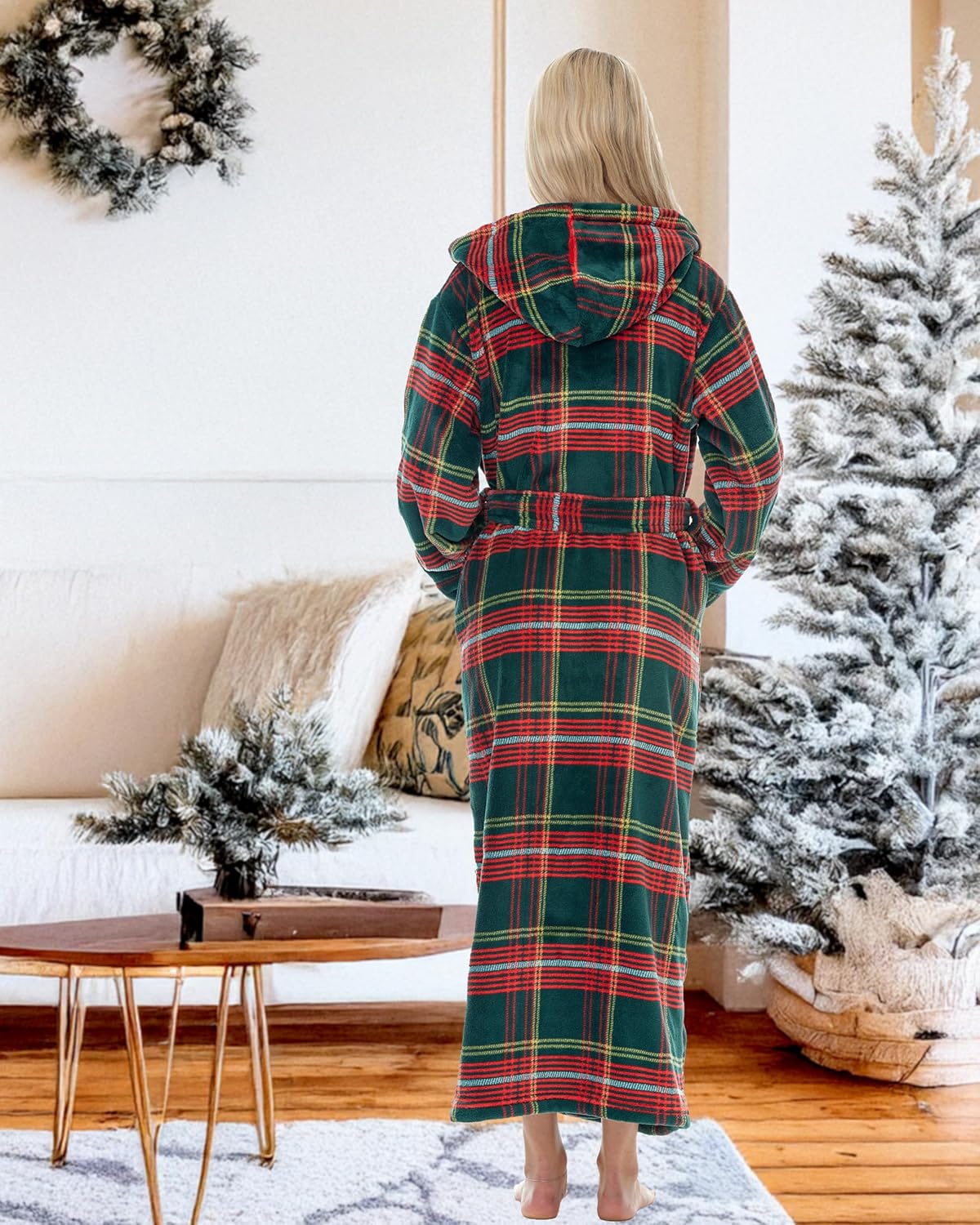 - THICKER - 2 times thicker than average fleece robe for women bathrobe. Hooded Bath robes female with male versions also available. The ideal, stylish housecoats for women for Fall and Winter. Size medium, Forest tartan robe by Alexander del Rossa.