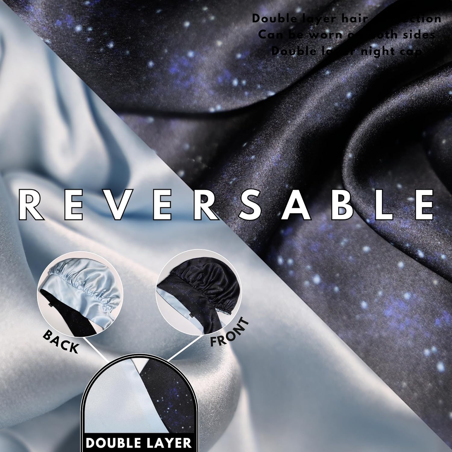 - Reversible Design for Versatile Use: Equipped with ties keeping the bonnet in place all night for maximum protection and comfort. The reversible satin bonnet for sleeping offers two elegant looks in one. Whether you need a stylish head wrap for black women or a comfortable silk hair wrap for sleeping, this bonnet adapts to your needs, providing unparalleled hair care and style. The adjustable ties ensure a secure and customizable fit.