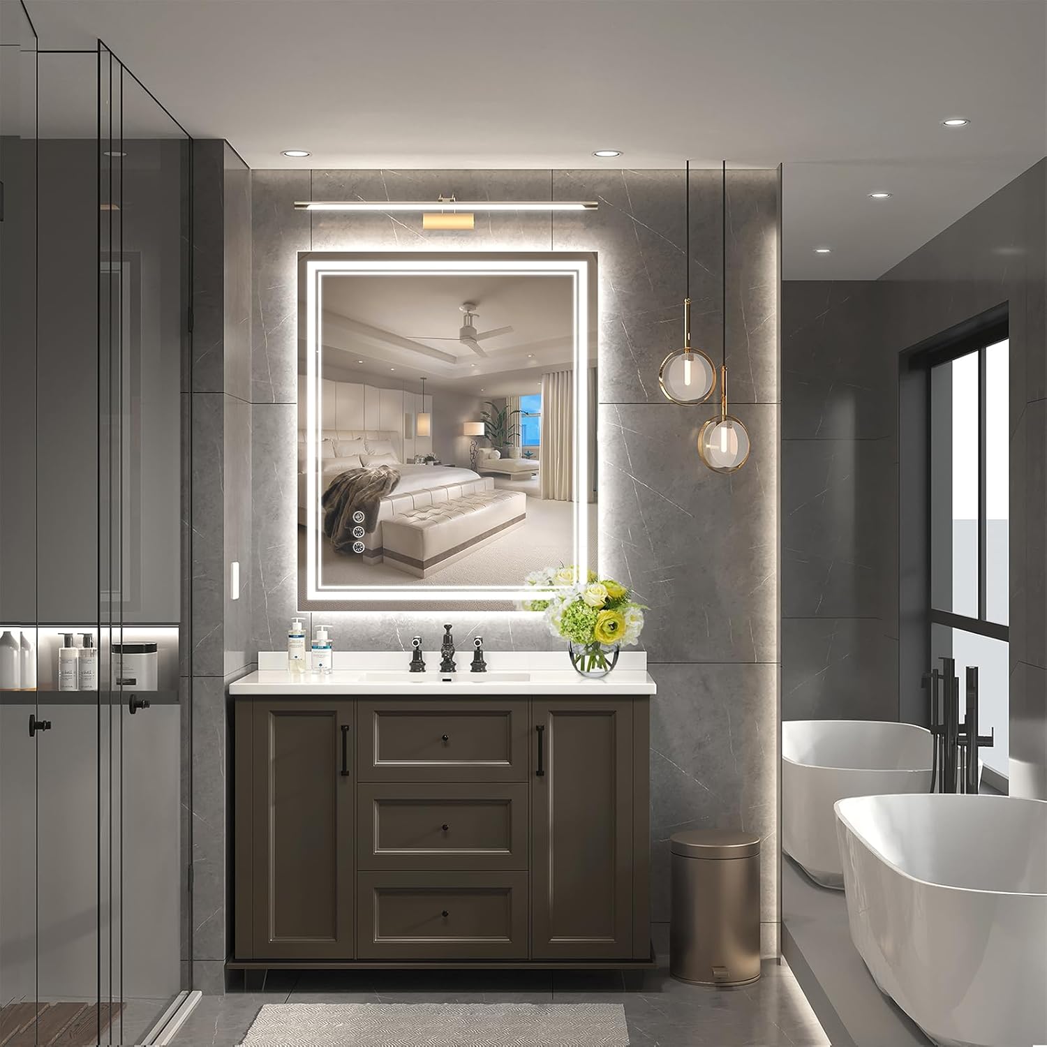 30x36 Inch LED Bathroom Mirror with Frontlit & Backlit(Independent Control), Lighted Mirror for Bathroom Wall with 3-Color Dimmable & Anti-Fog, Vanity Mirror with Lights