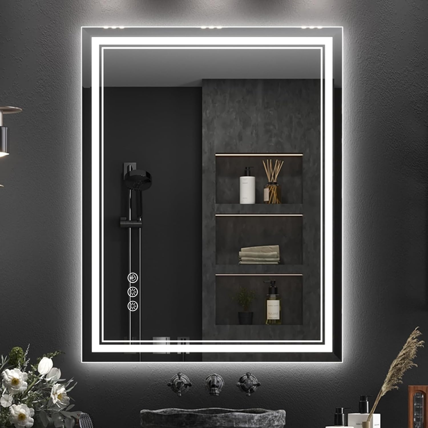 28x36 Inch LED Bathroom Mirror with Frontlit & Backlit(Independent Control), Lighted Mirror for Bathroom Wall with 3-Color Dimmable & Anti-Fog, Vanity Mirror with Lights