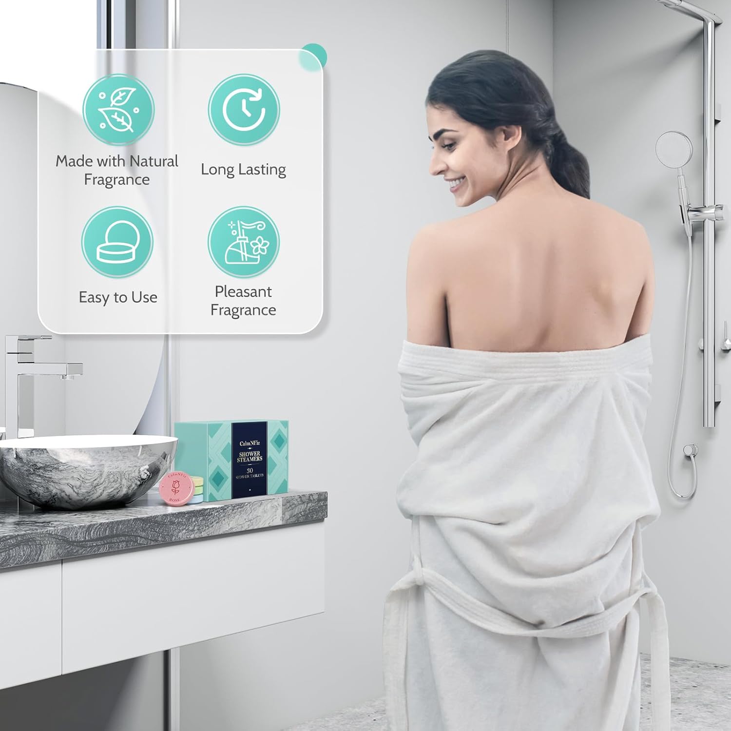 - Cost-effective: The 2 x 30 pack shower steamers range offers 2 x 6 vibrant colors and scents to take you on a sensory journey. Each scent is carefully curated and with 2 x 5 tablets each, CalmNFiz shower steamers will give you a different shower experience