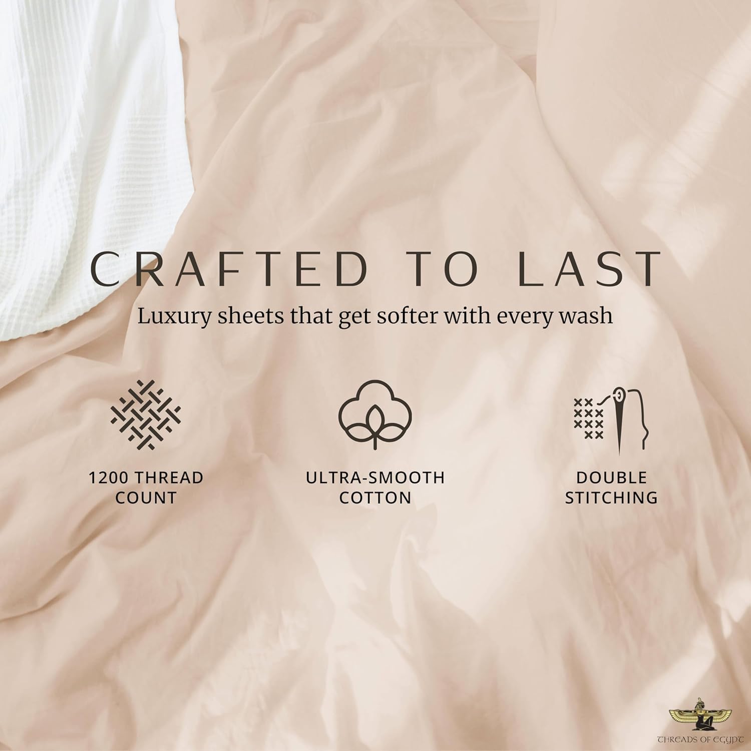 100% Egyptian Cotton Sheets Split King Size | 1200 Thread Count | CEA Gold Seal Certified | Ultra Soft | Cooling for Hot Sleepers | 18" Deep Pocket | Split King Size [Dune]