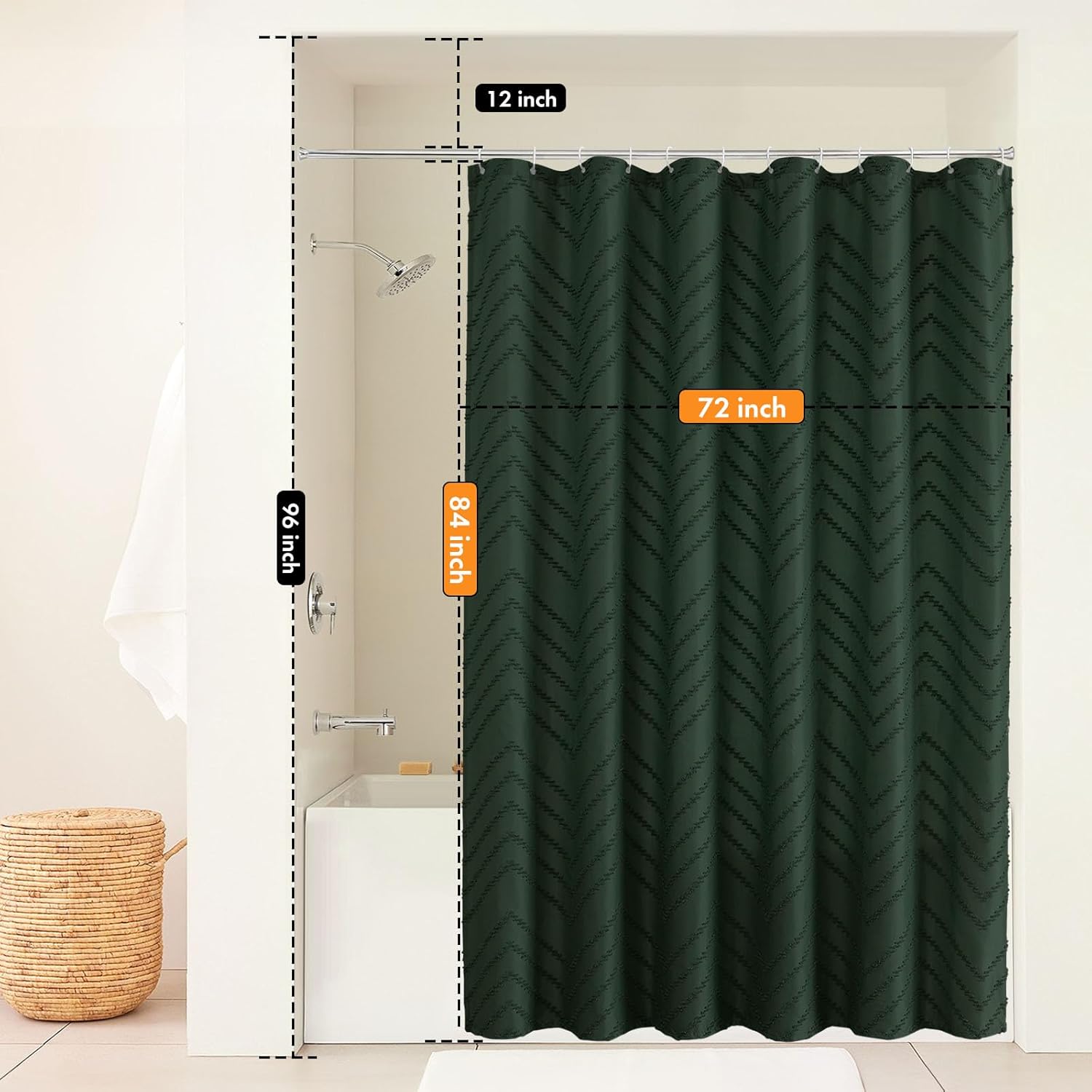 84inch Extra Long Dark Green Boho Shower Curtain Woven Fabric Shower Curtain Tufted Chervon Textured Shower Curtains Minimalist Shower Curtains for Bathroom