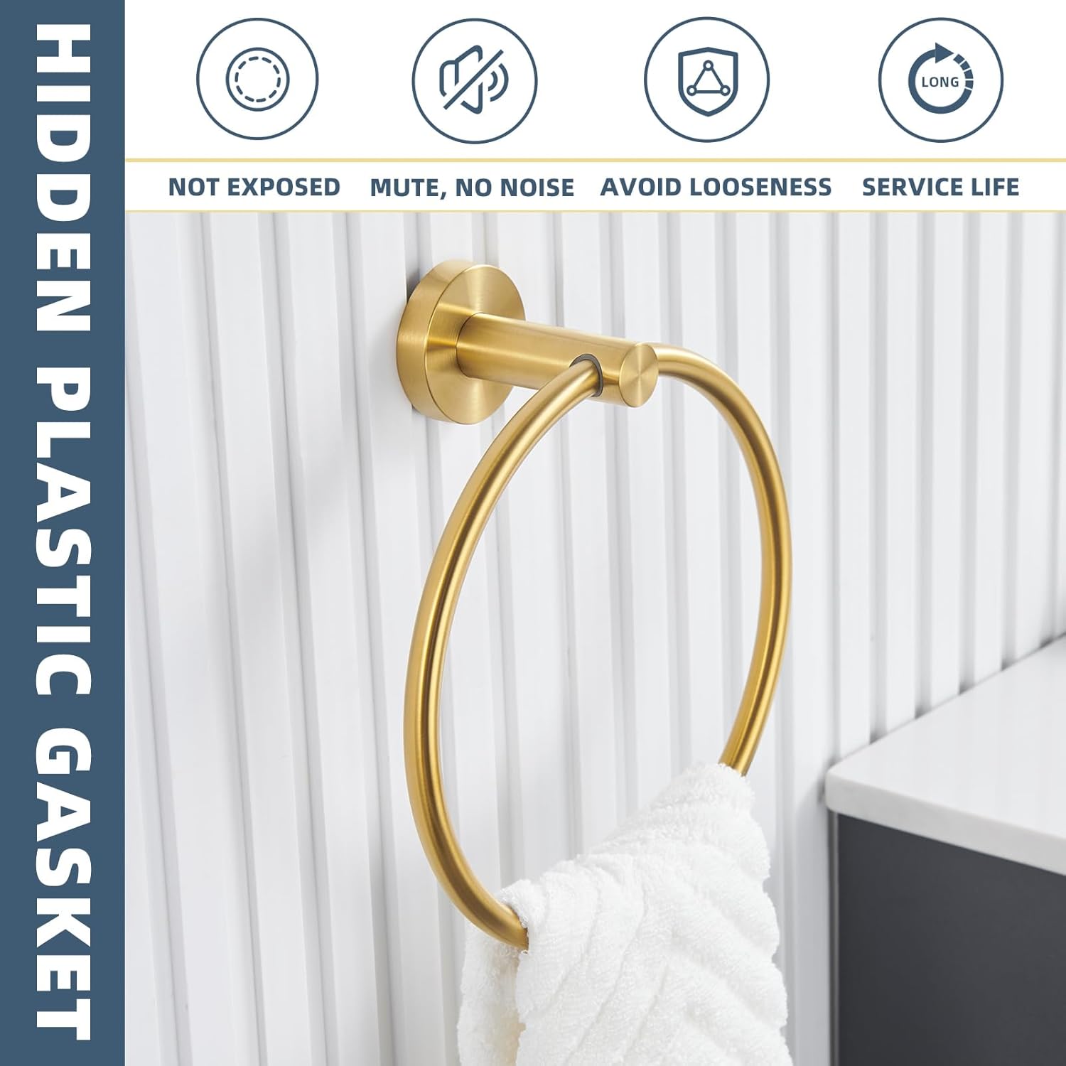 APLusee Brushed Gold 2 Pieces Bathroom Hardware Set, Hand Towel Ring and Toilet Paper Holder, 304 Stainless Steel Bath Accessories, Wall Mounted