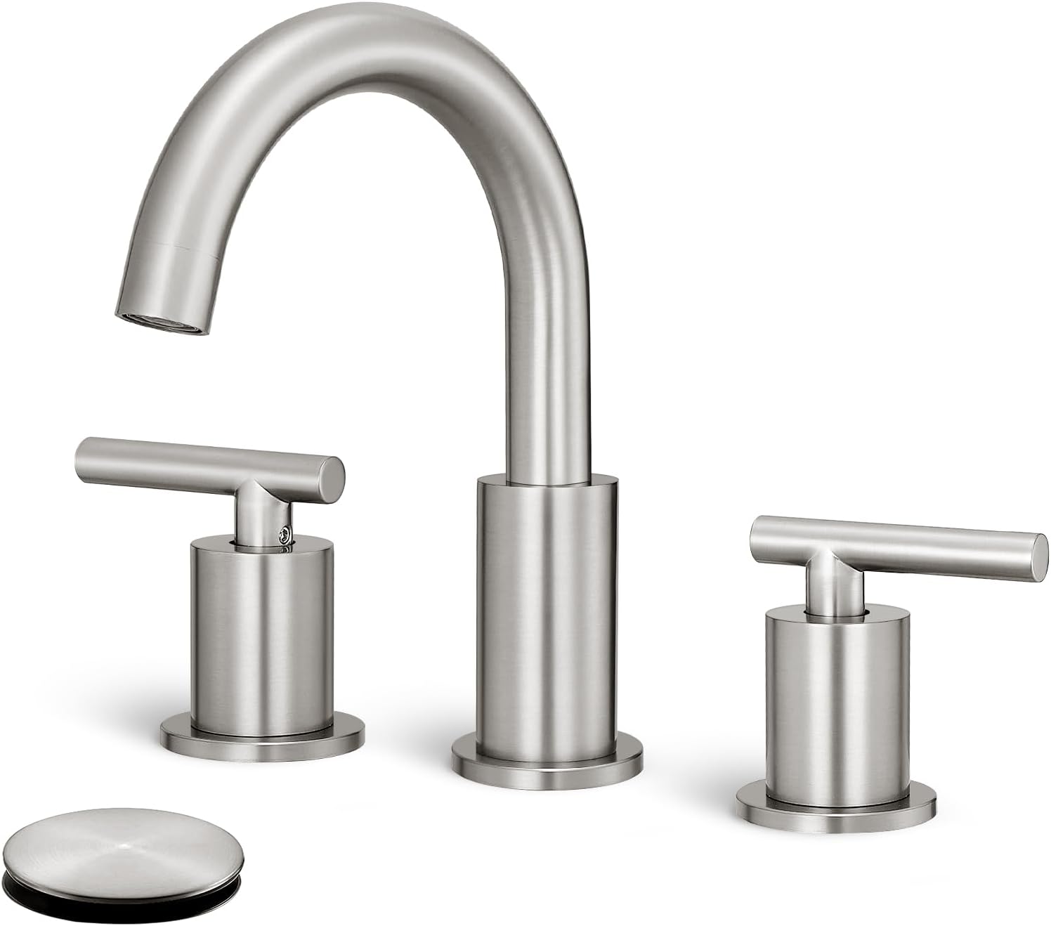 8 Inch Widespread Bathroom Faucet 3 Hole with Pop-up Drain, 2 Handle Bathroom Sink Faucet, Modern Vanity Faucet for Bathroom Sink with 360° Swivel Spout(Brushed Nickel)