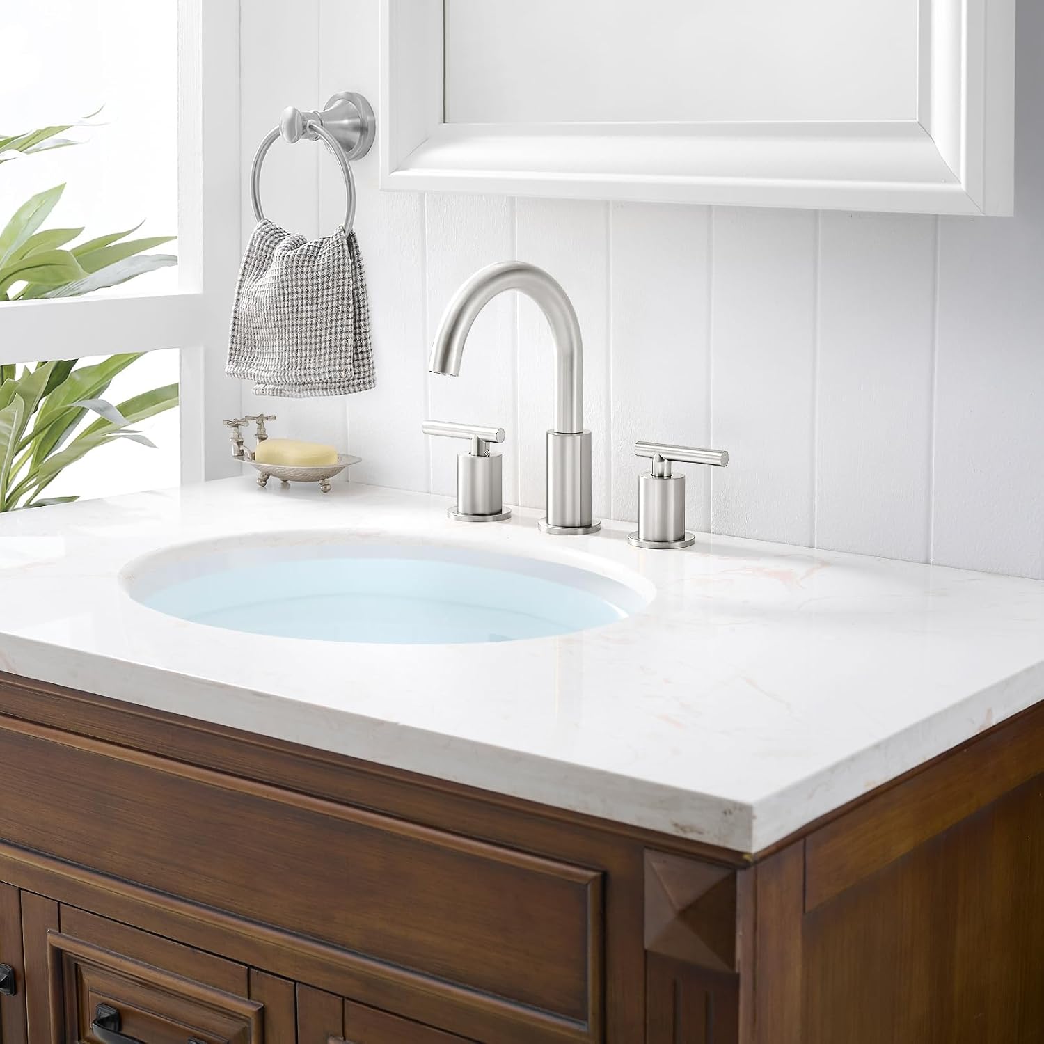 - Easy to Install: Our bathroom faucet comes with all necessary mounting hardware, including a pop-up drain and supply hoses, making for a quick and easy DIY installation process. It is perfect for a 3 hole 6-12 inch center sink, and the recommended installation effect is 6-10 inch. Get your faucet installed in under 20 minutes