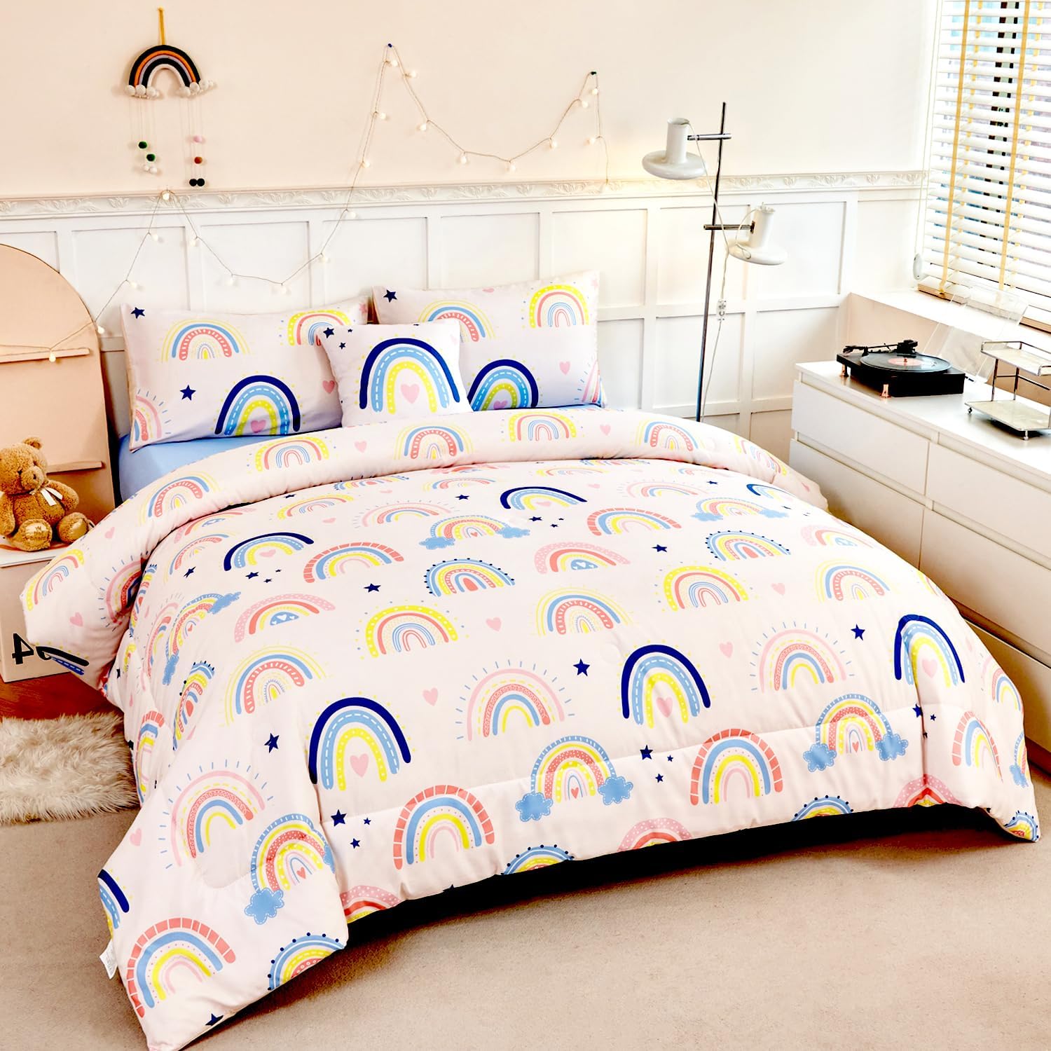 - [Cartoon Rainbow Design]: Adorned with playful cartoon colorful rainbow and clouds, it adds a cheerful and lively ambiance, perfect for igniting imagination and brightening up any space. The girl comforter set brings a whimsical touch to your bedroom decor.