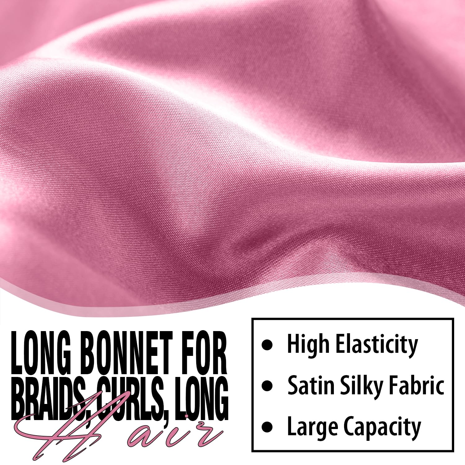 2Pcs Bonnets for Black Women Braid Bonnet, Large Long Satin Silk Bonnet for Braids,Black Women Braid Bonnet with Stretchy Tie Band for Sleeping Extra Long (Purple & Pink Pattern)