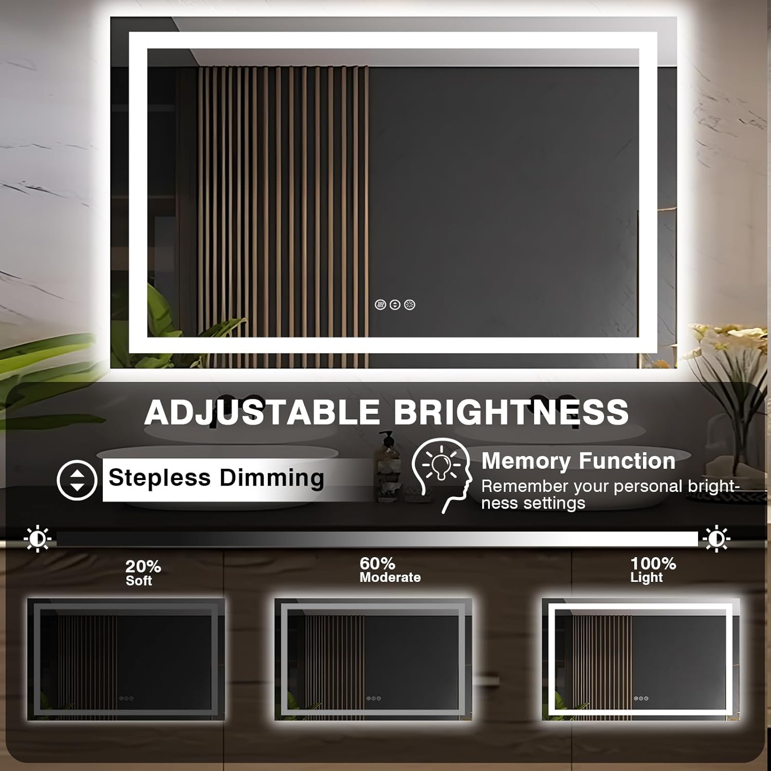 55"x36" LED Bathroom Mirrors for Wall, Front and Backlit Mirror, Anti-Fog Light up Mirror, Stepless Dimmable Lighted Mirror, 3 Colors Smart (Horizontal/Vertical)