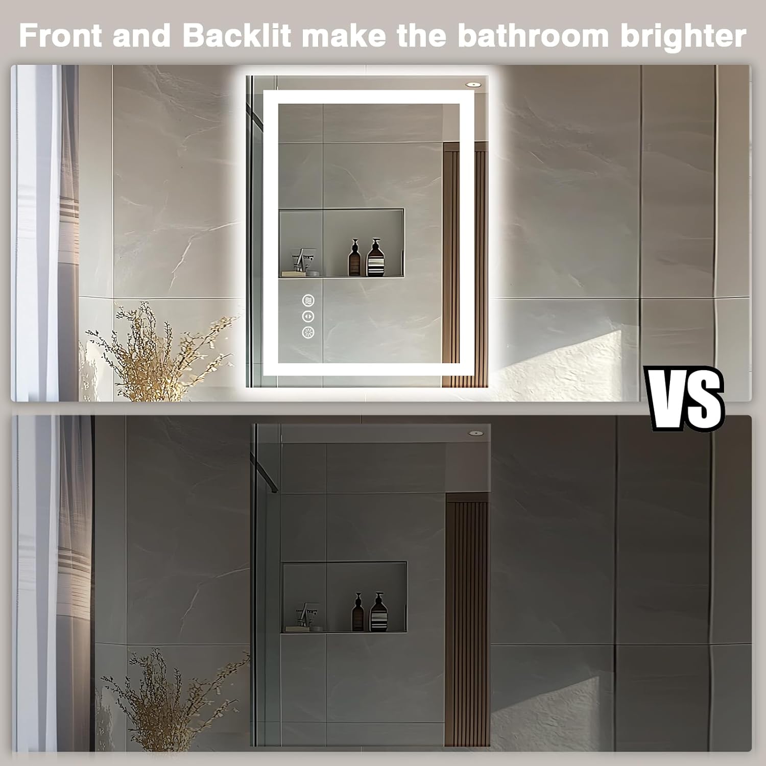 24"x32" LED Bathroom Mirror - Front & Backlit, Anti-Fog Vanity Mirror with Dimmable Lights, 3 Colors Smart Mirror (Horizontal/Vertical)