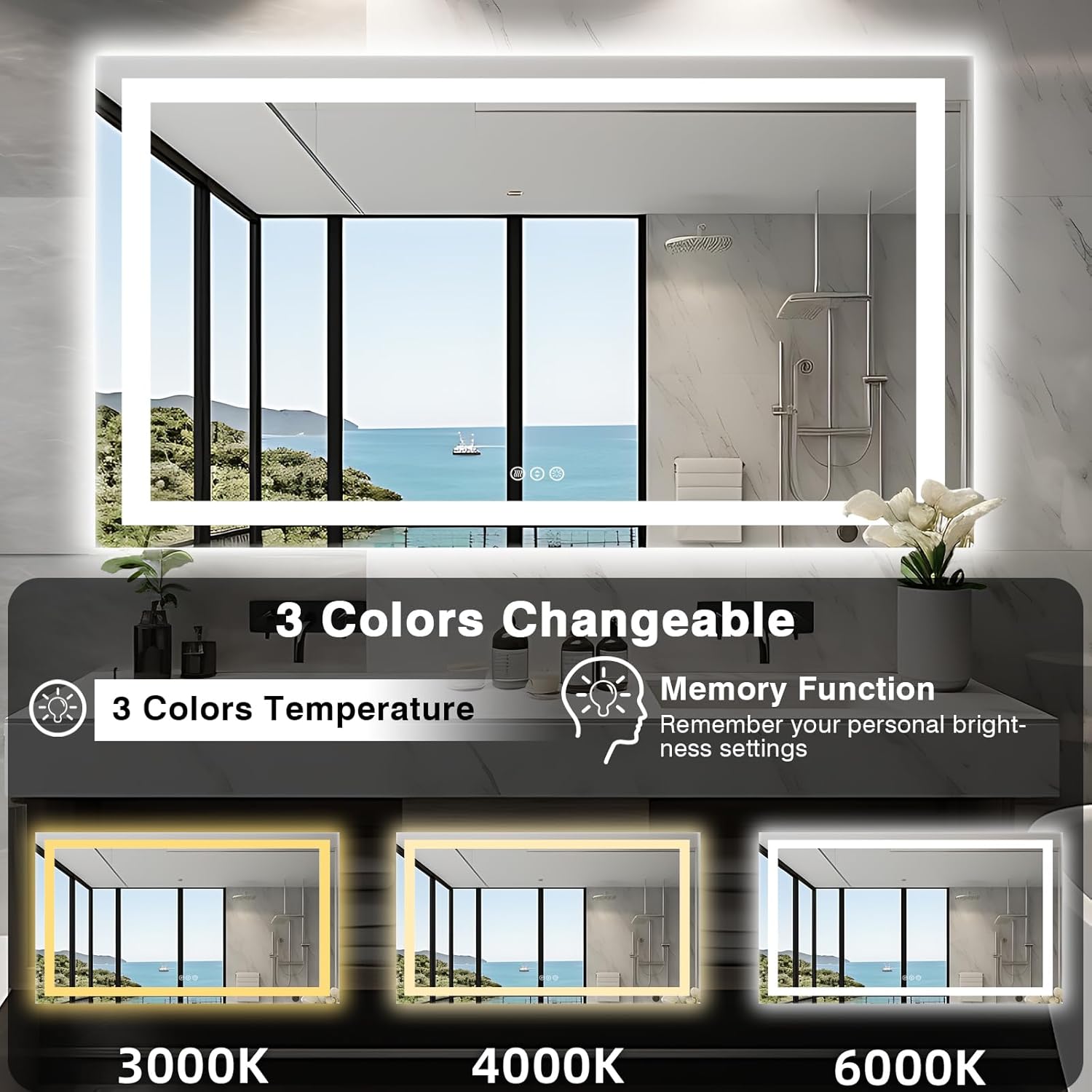 60"x36" LED Mirror for Bathroom, Front and Backlit, Anti-Fog Bathroom Mirror with Lights, Stepless Dimmable Lighted Mirror, 3 Colors Smart Mirror (Horizontal/Vertical)