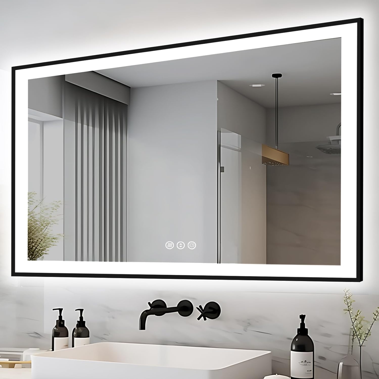 - [Space Black Aluminum Frame] Unlike other large LED bathroom mirrors, EchosLife's mirrors feature modern space black aluminum frames that create sophisticated atmospheres and add authentic touch of luxury.
