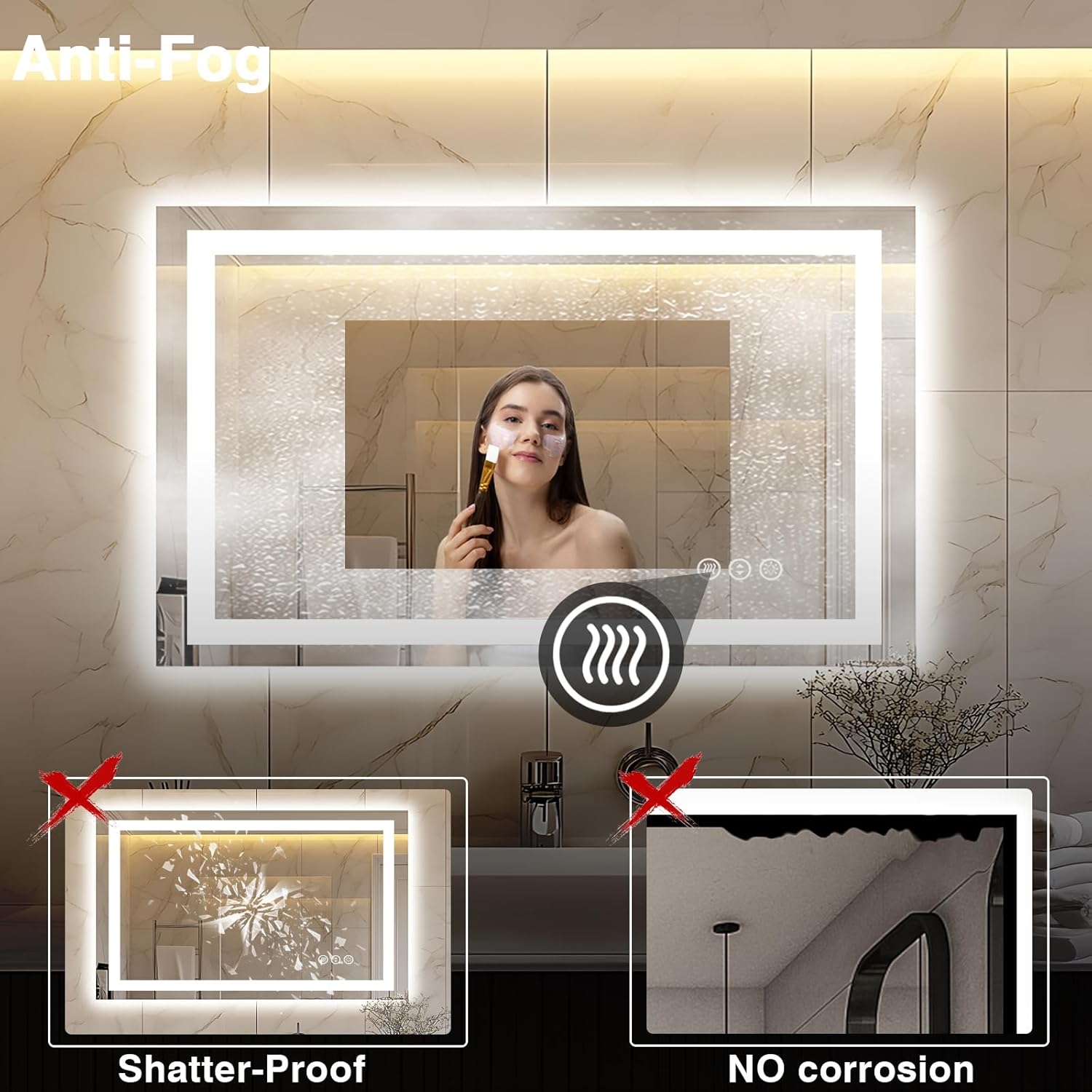 40"x24" LED Bathroom Mirror, Front and Backlit, Anti-Fog Bathroom Vanity Mirror, Stepless Dimmable Lighted, 3 Colors Smart Mirror (Horizontal/Vertical)